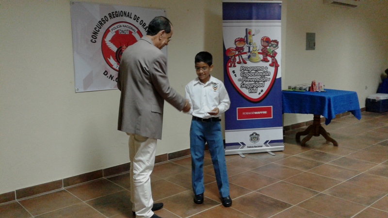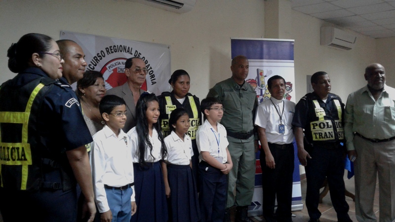 La Dirección Nacional de Operaciones del Tránsito de la Policía Nacional de la Zona de Coclé, realizó la oratoria de selección para el nacional a celebrarse en Panamá con el tema " Por un Panamá mejor salvemos vidas a través de la Educación Vial ", donde el niño Daniel Uarte de 10 años de edad, del Centro Básico Santa Rita de Antón fue seleccionado por el jurado calificador. Este evento se realizó en Penonomé, contó con tres jurados de ardua trayectoria como lo son el profesor Raúl Coronado quien funge como supervisor de Educación regional de la universidad de Panamá, la profesora Betty Jaramillo, maestra y coordinadora de eventos educativos y el señor Matías González, Perito Investigador de tránsito. Contó con la presencia del Comisionado Carlos Bethancourt ,ejecutivo de la Zona; el Mayor Adán Fernández encargado de la Policía de Tránsito en Coclé, el capellán de la zona el padre Edilberto Ortiz, unidades policiales, maestros y padres de familia que acompañaron en la actividad. En la actividad participaron exponentes de diferentes centros educativos se trata de Daniel Uarte de 10 años, del IV grado del Centro Educativo de Santa Rita, Arturo Cedeño del Cid de 9 años, de la escuela Federico Zúñiga Filiu, Julissa Álvarez de 11 años de edad, de la escuela Caballero de Antón y Ariane Velásquez de la escuela Virgilia Pombo de Bella Vista en Penonomé. Finalmente los niños recibieron obsequios y reconocimientos por unidades de la Dirección de Operaciones del Tránsito de la Policía Nacional. |