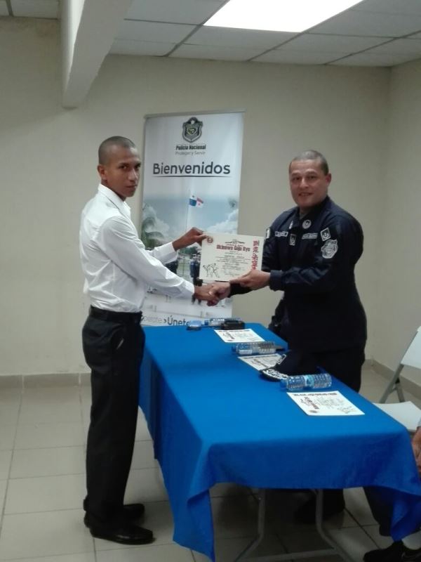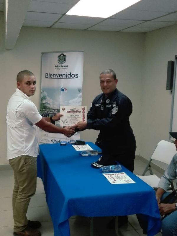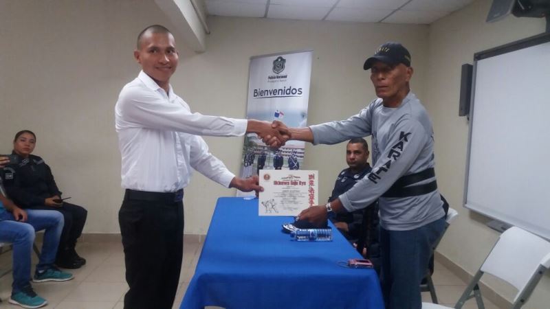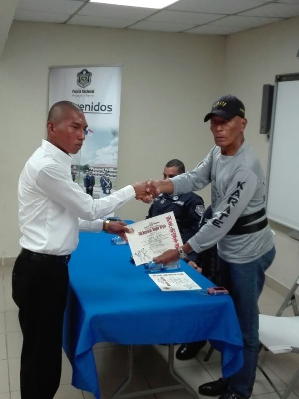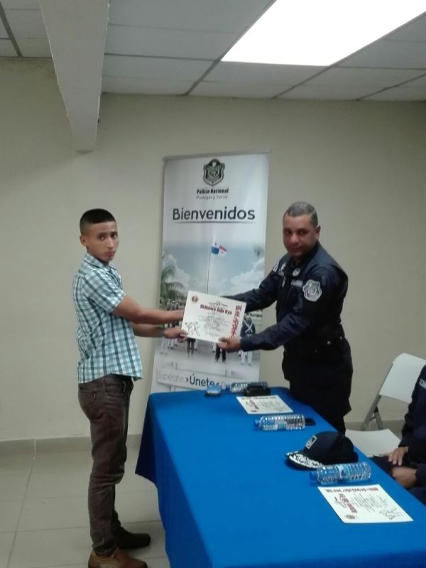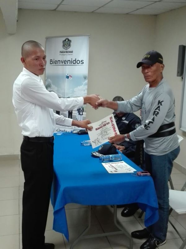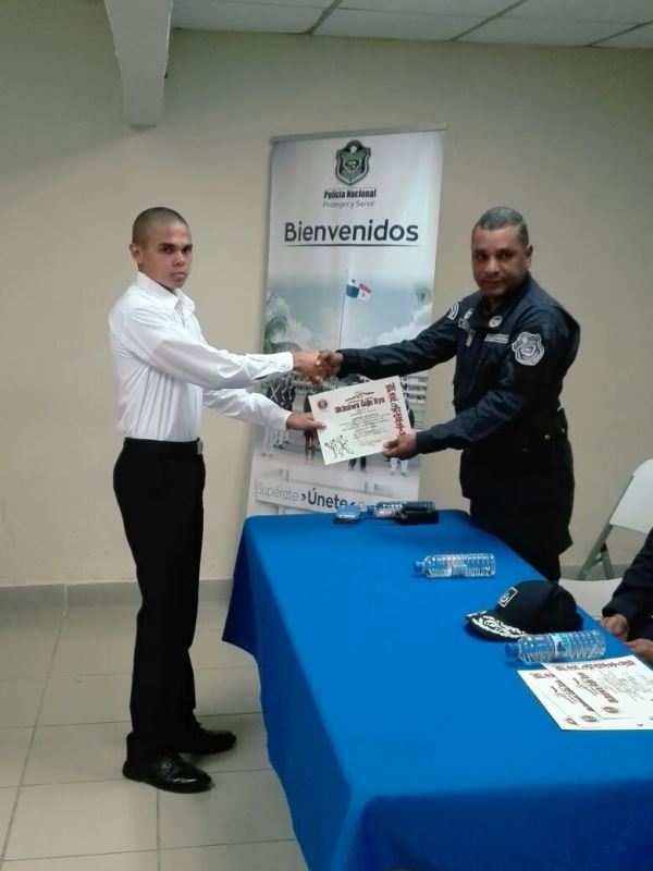Con un pequeño pero significativo acto, se llevó a cabo en la Zona de Policía de Panamá Oeste la graduación de Defensa Personal de los aspirantes a la Promoción de 84 de Agentes a Policías. El curso tuvo una duración de un mes y su objetivo es preparar los jóvenes física y mentalmente para ingresar a esta Institución Policial la que demanda mucha voluntad y sacrificio. La instrucción estuvo a cargo del Sensei Moisés Carrasco de la Academia Okinagoyu Ryu internacional de La Chorrera y participaron 20 jóvenes. En la clausura estuvo presente el Subcomisionado Virgilio Lezcano en representación del Jefe de Zona Comisionado Gilberto Samaniego, el Subcomisionado Fernando Rivera el Sensei Moisés Carrasco, la subteniente Kathia Valdez encargada de la Sección de Reclutamiento. El Joven Franklin Falcón por parte de los participantes, agradeció a los jefes de la Zona por haberles prestado el apoyo no solamente con las instalaciones para una mejor preparación sino por el interés de que ellos pasen a otra etapa siendo los mejores y al Sensei Carrasco por su tiempo y dedición. El Subcomisionado Virgilio Lezcano les motivó a continuar en la búsqueda de su objetivo y que tengan presente que en la vida se tienen altas y bajas, pero el éxito depende de nosotros mismos. |