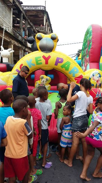 Ciclistas de la zona policial de Colón, realizan cierre del mes del Niño y la Niña, con actividad recreativa para los niños que residen en la calle 9 entre las avenidas Central y Meléndez. La actividad conto con la presencia del comisionado Carlos Rumbo, que también compartió con los infantes, quien señaló la importancia de compartir con los más pequeños, para que vean en el policía un amigo. En la actividad los niños jugaron fútbol, manejaron bicicleta disfrutaron del brinca brinca y de muchas golosinas. |