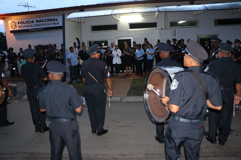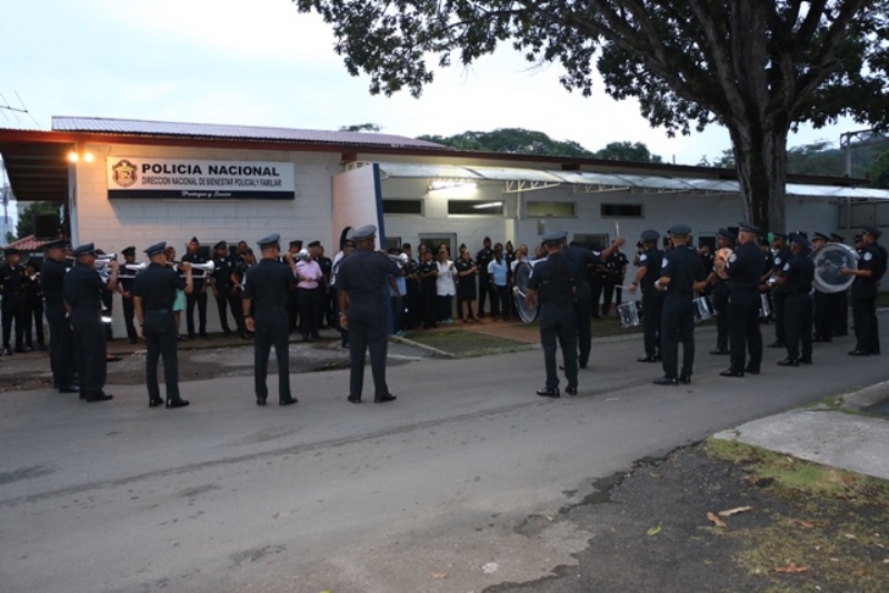 Con las tradicionales Dianas en la sede de la Policía Nacional y una misa en la iglesia de Saint Mary, en Balboa, corregimiento de Ancón, la Dirección Nacional de Bienestar Policial y Familiar inició la celebración de sus cuatro años de aniversario. Con mucho jubilo, el personal juramentado y no juramentado que labora en esta dependencia policial se unieron a las actividades en festejo a los logros obtenidos desde su creación el 1 de agosto de 2012, mediante Orden General del Día No. 144 del 31 de julio. “Felicitó a todo el recurso humano que integra la Dirección Nacional de Bienestar Policial y Familiar, por los aportes que contribuyen a fortalecer la labor que realiza la institución a favor de la comunidad”, dijo el Director General de la Policía Nacional, Omar Ariel Pinzón Marín. En tanto, la subcomisionada y Directora Nacional de Bienestar Policial y Familiar, Elida Ortega destacó que esta dependencia se ha constituido en promotora del fortalecimiento de la familia y en soporte a la labor de acercamiento con la comunidad, creando puentes. Ejemplo de ello, las actividades de prevención e integración dirigidas a niños y jóvenes, como parte del programa de “Convivencia Pacífica” que a través del departamento de Deportes, promueve valores y un ambiente sin violencia. Uniformados y personal no juramentado altamente preparados y que se desempeñan como sicólogos, trabajadoras sociales, médicos, enfermeras, paramédicos, administrativos y deportistas forman parte de esta dirección, comprometida en garantizar la mejor calidad de vida a los miembros de la institución y sus familias. Las actividades deportivas y familiares también están agendadas en la celebración de este aniversario.