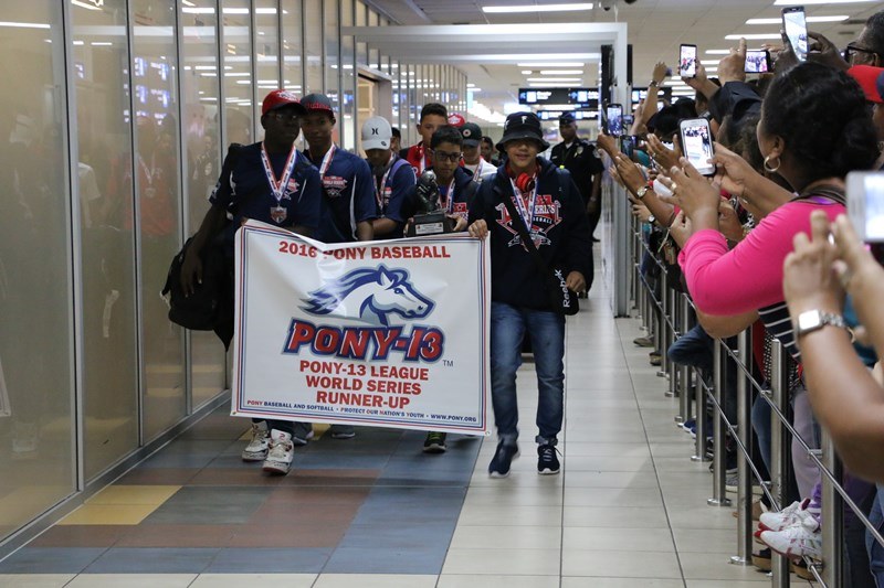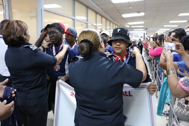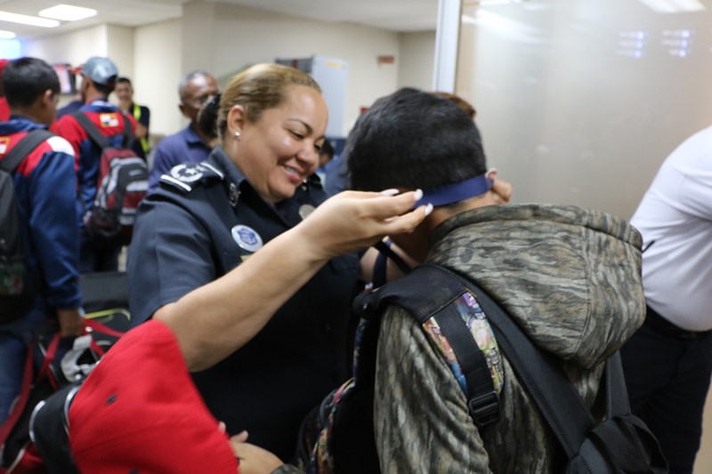 A suelo patrio volvió el equipo de béisbol de la Policía Nacional en la categoría Sub 13, tras alzarse con el subcampeonato del Torneo Mundial de Béisbol Infantil de la liga “Pony Béisbol” que se desarrolló del 29 de julio al 1 de agosto en Los Ángeles, California, Estados Unidos. En representación del Director General de la Policía Nacional, Omar Ariel Pinzón Marín los destacados peloteritos fueron recibidos por la Comisionada Oris Jaén y la Subcomisionada Elida Ortega, quienes les impusieron medallas de reconocimiento por dejar en alto el nombre de Panamá y de la Policía Nacional. “Evaluamos este resultado como positivo, ya que somos subcampeones del mundo, en torneo bastante difícil donde va un representante por continente. Nos tocó representar a Latinoamérica y la hemos dejado muy en alto”, sostuvo el Comisionado Julio Aizpurúa, Jefe de Deporte de la Policía. El Campeón Lanzador del Torneo fue el chiricano Erick Saldaña quien lanzó dos juegos completos de 7 episodios, tuvo una efectividad bastante buena y ponchó a 18 contrarios. Igualmente se destaca la actuación del lanzador herrerano Manuel Rodríguez quien lanzó un juego casi perfecto, solo le metieron 2 hits. La selección sub 13 panameña se enfrentó a Filipinas, México, Whittier (equipo local), Texas, Grand Launder y Hagerstown. El último fue un partido reñido que se mantuvo cero a cero hasta el cuarto episodio, donde Panamá le ganó a Whittier 5 a 0 en una ronda de tres partidos de los cuales ganamos dos enfrentamientos, para obtener el subcampeonato. “Nos queda prepararnos para el mes de septiembre, que nos toca la Copa Internacional Policía Nacional donde participarán México USA, Guatemala, Nicaragua, Colombia y Panamá, que se va a realizar en la ciudad de Chitré”, concluyó el Subcomisionado. |