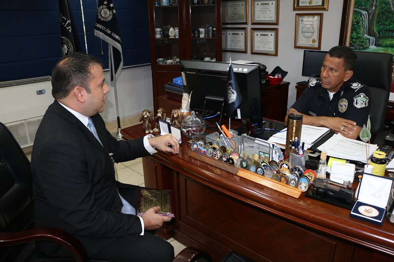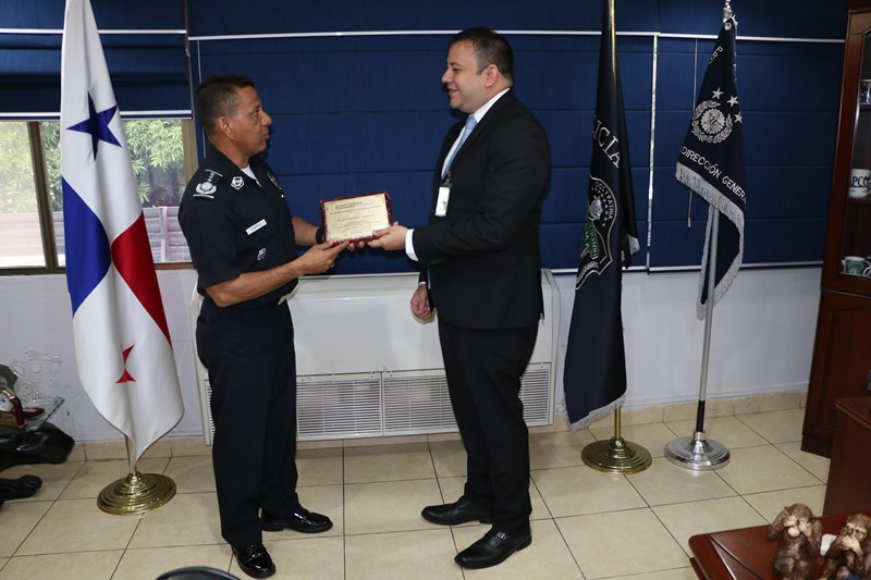 El Subdirector General de la Policía Nacional, Javier Castillo, en nombre del Director General, Omar Ariel Pinzón Marín, recibió una placa de reconocimiento de manos del señor Aníbal Ortiz, del Ministerio de Desarrollo Agropecuario (MIDA), por el apoyo brindado durante la 6ta Agenda Global para la “Ganadería Sostenible” que se realizó el mes de junio en Panamá. “Se continúa trabajando en conjunto con las diferentes instituciones, y es muy importante, que los países que participaron de este evento, observaran el respaldo que tienen por parte de la Policía Nacional en materia de seguridad”, destacó Castillo. Así también agradeció por la placa de reconocimiento, que se le entrega a la Policía Nacional, ya que es importante resaltar labor que realizan cada uno de los uniformados en su labor de proteger y servir a la ciudadanía. La actividad se llevó a cabo en la Subdirección de la Policía Nacional, ubicada en el corregimiento de Ancón. |