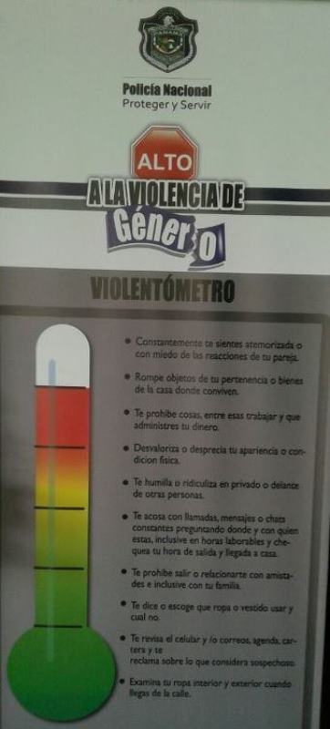 Continuando con la campaña contra la Violencia de Género, unidades de la 4ta Zona Policial de Chiriquí, realizaron el acto de colocación del Violentómetro, en la Estación Policial de David, con el lema: ¡Decidimos no callar…Decidimos afrontarla! ¡No a la violencia de género!. El acto dio inicio con las palabras de reflexión por parte de la Subteniente Aida González, mientras que las palabras de bienvenidas las dio el Comisionado Eric Javier Amaya Sánchez, Jefe de la 4ta. Zona, quien manifestó que es de suma importancia unirse como personas, como compañeros a esta campaña contra la violencia. “Hay formas de combatirlas la violencia, desde ámbito personal como desde la ayuda institucional, con los trabajadores sociales, psicólogos y superiores, debemos unirnos a esta campaña”, acotó el jefe de esta zona policial. En este lanzamiento estuvieron presentes el Comisionado Eric Javier Amaya Sánchez, Jefe de la 4ta. Zona Policial de Chiriquí, la Licenciada Dalma Chirola, Directora Regional del CINAMU, Licenciada Idalgis Olmos, Fiscal Primera Superior de la provincia, el Licenciado Einso Samudio, de la Fiscalía de Familia, la Licenciada Elsi Pinzón, Jefa Administrativa del Ministerio Público, el Licenciado José Luis Miranda, oficial de Derechos Humanos de la Defensoría del Pueblo, Personal Juramentado y No Juramentado de la Policía Nacional. |