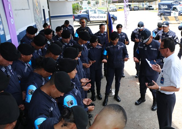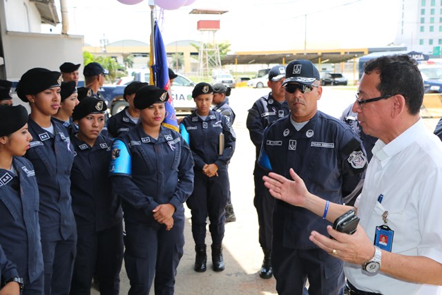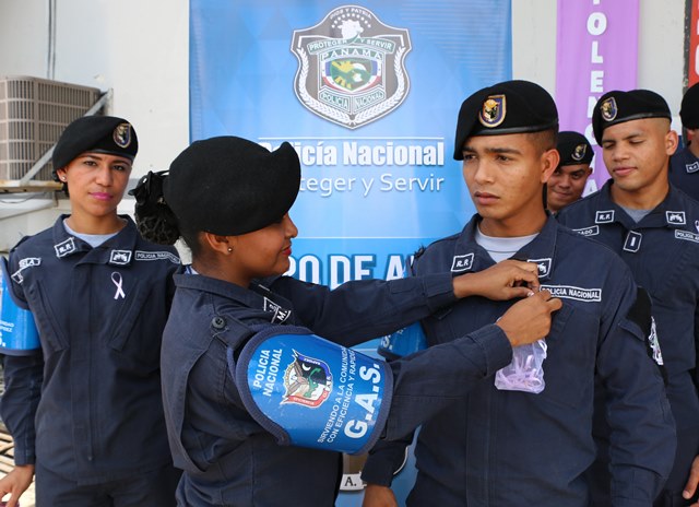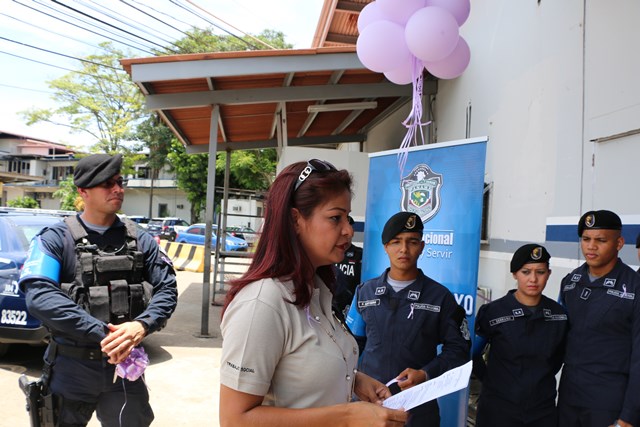 El Grupo de Apoyo al Servicio (G.A.S.) de La Policía Nacional apoyando la prevención de la violencia de género, se viste de morado y dicen: ¡No a la violencia de género! El G.A.S. se une a esta iniciativa de prevención de la violencia doméstica y de género, haciendo un corte de cinta con el que formaliza su compromiso con la causa. Desde hoy inician jornadas de orientación y fortalecimiento institucional para minimizar el impacto negativo de la violencia, procurando la equidad de género, puntualizó el comisionado Gustavo Cogley, jefe del Grupo de Apoyo al Servicio. Adicional a la decoración con color morado, las unidades policiales que pertenecen a este grupo policial, tienen como tarea servir de entes promotores del derecho que tiene todo hombre y mujer de tener acceso a las mismas posibilidades de desarrollo en la vida. |