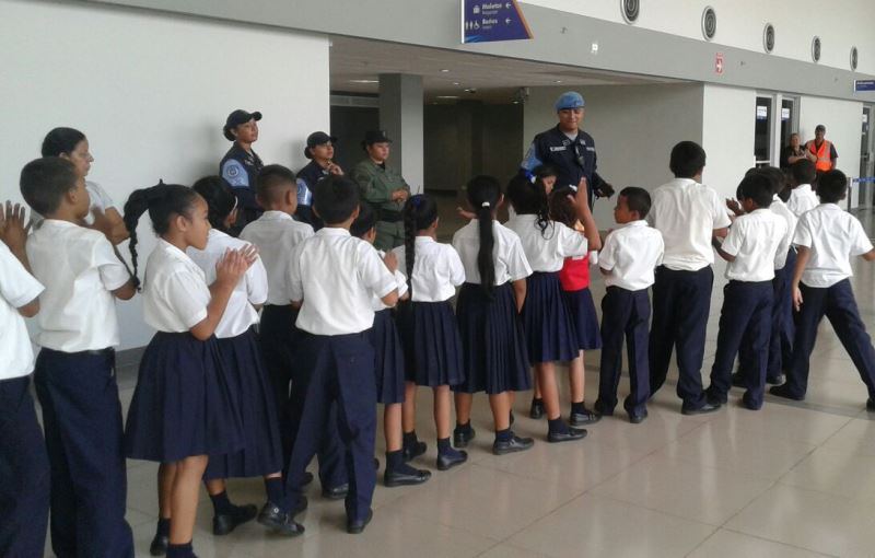 Unos 50 niños de la Escuela de Pedregal pasaron una mañana muy alegre con las unidades de la Unidad Preventiva Comunitaria (UPC), quienes organizaron una excusión a las instalaciones del Aeropuerto Internacional Enrique Malek, ubicado en la ciudad de David. Esta gira educativa se realizó con la finalidad de que los estudiantes del nivel de tercer grado del centro educativo conocieran la importancia y función de los medios de transportes aéreos. Los pequeñines no solo visitaron las instalaciones del aeropuerto; sino que tuvieron la oportunidad de subirse en un avión. |