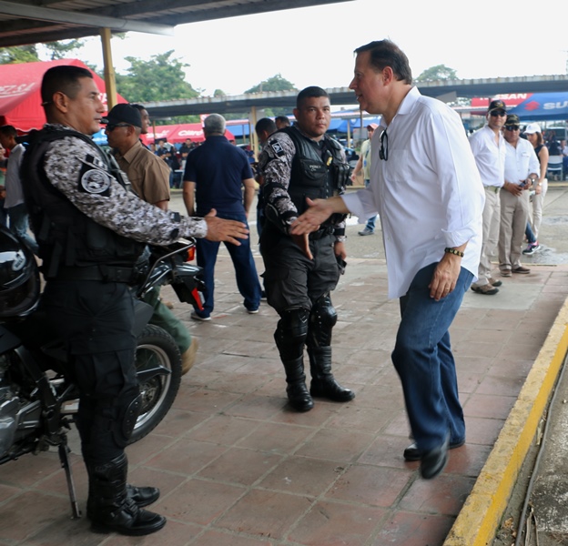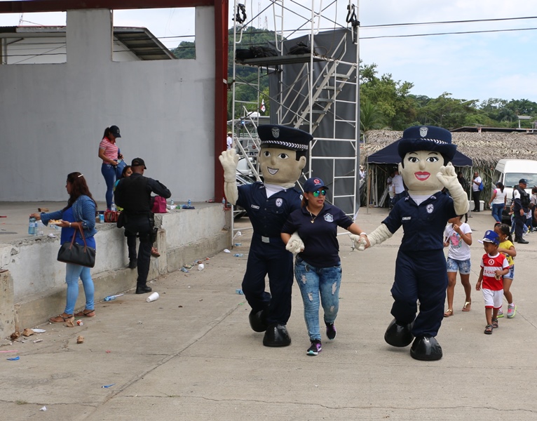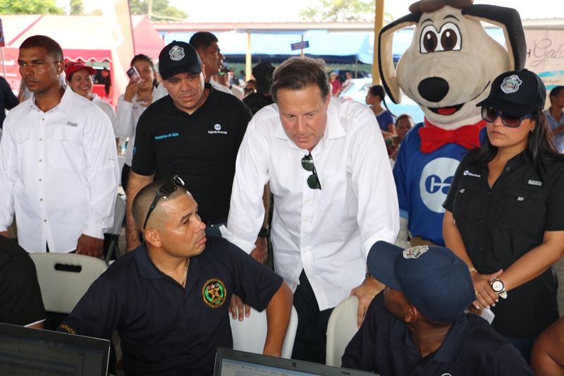 “Este no es más que el trabajo que realizan las diferentes instituciones de seguridad promovidas y motivadas por el Presidente de la República, Juan Carlos Varela; la misma no hubiese sido posible si él no motiva a nuestros policías y sus familiares”, expresó el Director General de la Policía Nacional, Omar Ariel Pinzón Marín durante el cierre de la Feria Diversificada y de Préstamos en la sede de la institución de seguridad en Ancón. De acuerdo con el jefe policial este esfuerzo siempre va orientado en buscar esa estabilidad emocional, y familiar para que los policías puedan estar tranquilos, valorando el trabajo que diariamente realizan. La actividad fue organizada por todos los estamentos de seguridad del estado, la misma contó con la presencia del Presidente de la República, Juan Carlos Varela, quien junto al jefe policial realizó un recorrido por los más de 20 stand de las diferentes dependencias y zonas policiales de las entidades participantes. Este sábado 6 de agosto fue el cierre de esta feria diversificada en la que miembros juramentados y no juramentados, aprovecharon para adquirir sus productos alimenticios y otros artículos a precios bajos y de calidad. Las unidades policiales y sus familiares adquirieron alimentos de primera necesidad, además del espacio infantil, que se les habilitó a los pequeños que tenían pinta caritas, juegos de inflables, tirolina, paseos en motos, exhibición canina; entre otras atracciones. Mientras que otros aprovecharon y se acercaron a los diversos stands entre ellos Caja de Ahorros “el Banco de la Familia Panameña”, encargada de realizar los trámites a los interesados. Hubo stand de promotoras de viviendas, ventas de autos, libros y artesanías, entre otros servicios y productos que brindaban; La Orquestas de los diversos estamentos de seguridad Policía Nacional, (PN), Servicio de Protección Interinstitucional, (SPI) Servicio Nacional Aeronaval, (SENAN), y el Servicio Nacional de Fronteras, (SENAFRONT), fueron los encargados de brindarle el toque alegre, ya que interpretaron canciones populares del género tropical salsa, entre muchas más.