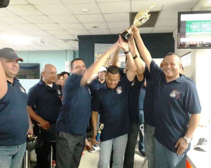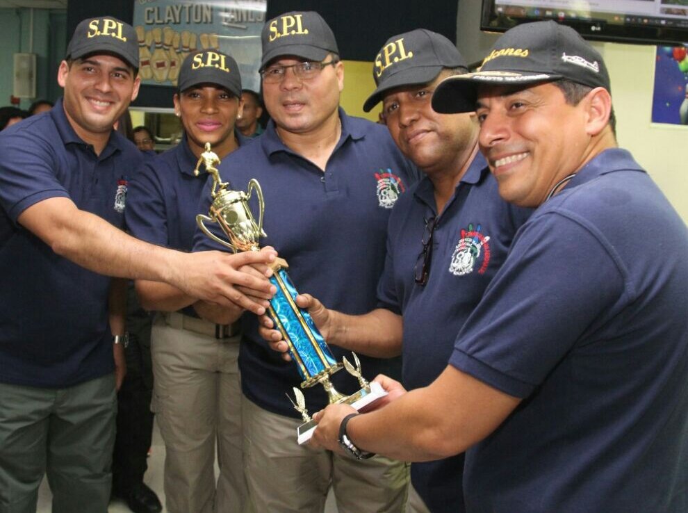 El equipo de la Policía Nacional conformado por miembros del Directorio Nacional y jefes de dependencias policiales logró alzarse campeón del Primer Torneo de Bolos interinstitucional en celebración de los ocho años del aniversario del Servicio Nacional Aeronaval (Senan). Este encuentro deportivo que se realizó este viernes 12 de agosto en Bolos El Ñeque, ubicado en Ciudad del Saber, Clayton se caracterizó por el compañerismo y amistad existentes entre los estamentos de seguridad. Los oficiales de la Policía Nacional se valieron de la perfecta precisión para derribar el mayor número de bolos en menor tiempo, liderizando así esta competencia. Le correspondió a Belsio Gonzales y Javier Castillo, Director del Senan y subdirector de la Policía Nacional respectivamente, entregar los trofeos del primer, segundo y tercer lugar. La actividad forma parte de la agenda de aniversario del Senan que este sábado 20 de agosto cumple ocho años de creada para brindar seguridad en el espacio aéreo y marítimo de la República de Panamá.