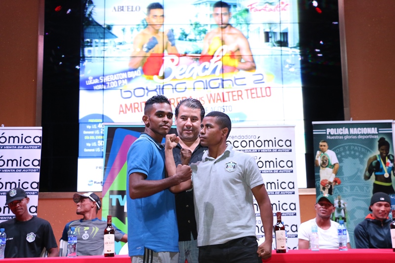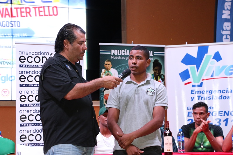 El pugilista y agente de la Policía Nacional, Walter Tello, se disputará por el título nacional de las 108 libras y del Fercabox del Consejo Mundial del Boxeo, ante Amrit Herrera, el próximo 20 de agosto, a las 8:00 p.m. El evento deportivo que se organiza por segunda vez, lleva por título: “Beach Boxing Night 2” y tendrá lugar en un hotel de playa, ubicado en el corregimiento de Santa Clara, Arraiján. Para darle respaldo al evento, los organizadores tendrán otros ochos combates boxísticos, de entre lo que figura la pelea en cuatro (4) asaltos, del agente Fernando Bustamante, contra Edwin Opua. |