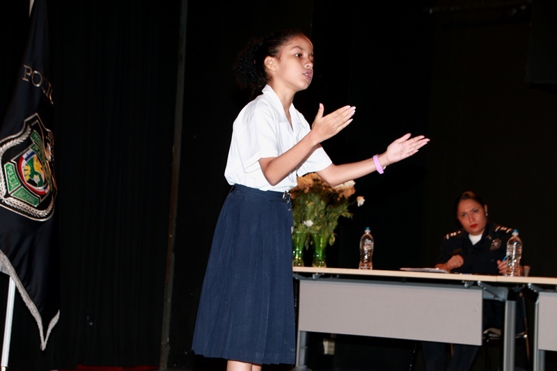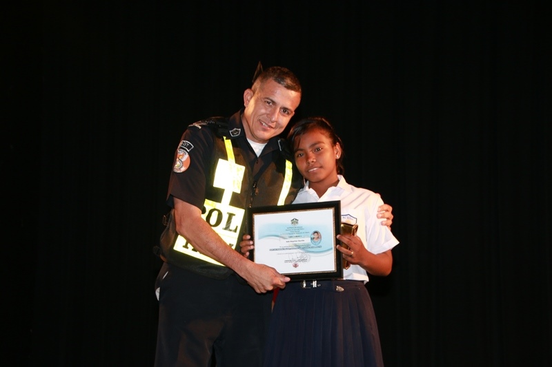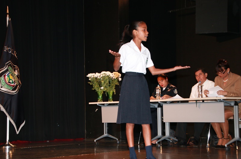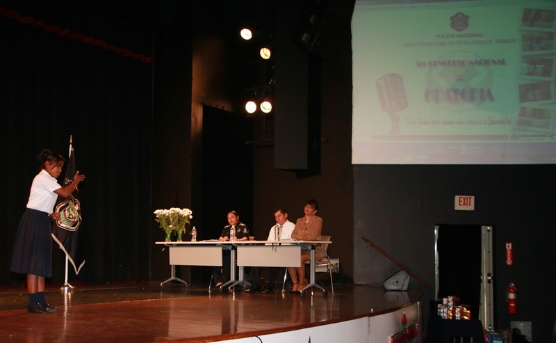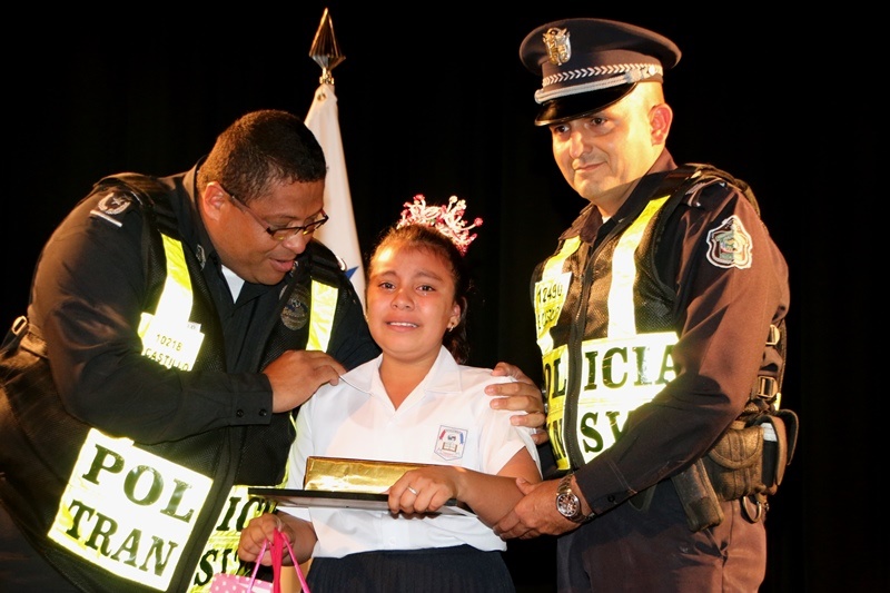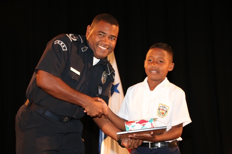 Cristhian Joel Mendieta estudiante del Centro Básico General José del Carmen Echevers del distrito de Chepo, resultó ganador del tercer concurso nacional de oratoria organizado por la Dirección Nacional de Operaciones de Tránsito (DNOT) de la Policía Nacional como parte de las actividades conmemorativas de sus 47 aniversario. Mendieta de 12 años de edad, resaltó de entre 14 estudiantes de escuelas primarias (públicas y privadas) a nivel nacional, quienes participaron del concurso que este año tuvo como tema “Por un Panamá mejor, salvemos vidas, a través de la Educación Vial”, llevado a cabo en el auditorio Ascanio Arosemena de la Autoridad del Canal de Panamá. El comisionado Javier Fanuco Pimentel, director de la DNOT, dijo sentirse orgulloso de que sean las voces infantiles las que resalten la importancia de velar por el uso correcto de las vías públicas, tanto por parte de los conductores como de peatones. “Cada una de las unidades de la DNOT, cumplen diariamente con el lema de Proteger y Servir, pero también es un compromiso de todos los que utilizan las vías públicas respetar las señales de tránsito” resaltó Fanuco. El estudiante ganador es representante de la Subdirección de Tránsito del distrito de Chepo, mientras que el segundo lugar fue para María Mercedes Barrios de la provincia de Los Santos, el tercer lugar para la representante de la provincia de Colón, Rosibel Espinoza y el cuarto para la niña Harlyn Navarro del distrito de Chame. La niña Alisson Campos del Centro de Orientación Infantil (Coif) Rayitos de Sol de la Policía Nacional y el cadete Roberto Arauz de la Escuela de Oficiales de Policía (ESOPOL), disertaron temas relacionados a la importancia de la seguridad vial en Panamá. La teniente Aracelis Ramos de la Dirección Nacional de Docencia y los profesores Ramiro Mitre y Vilma Yong del Ministerio de Educación, fueron los encargados de calificar la expresión verbal, corporal, apariencia personal y contenido del discurso de los 14 estudiantes. A cada uno de los estudiantes se le entregó obsequios y certificados por parte de los patrocinadores y encargados de cada subdirección, por su participación en este concurso. Esta actividad se llevó a cabo con el apoyo del Ministerio de Educación, Autoridad de Canal de Panamá, Cooperativa de Ahorro y Crédito (COOPEDUC), Fundación Mapfre y Odebrecht.