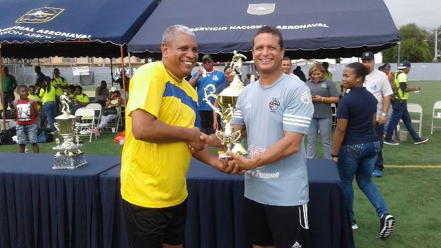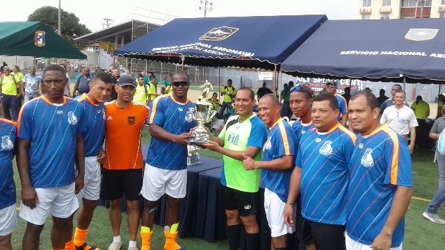 Las unidades de la Policía Nacional se llevaron el tercer lugar en la liga de fútbol amistoso que se realizó conmemorando el VIII aniversario del Servicio Nacional Aeronaval (SENAN). En esta ligar participaron unidades de la Policía Nacional, el Servicio de Protección Institucional (SPI), Servicio Nacional de Fronteras (SENAFRONT), Servicio Nacional Aeronaval (SENAN). El primer lugar en este amistoso fue para el Servicio Nacional de Fronteras (SENAFRONT), mientras que el segundo lugar se lo adjudicó el Servicio de Protección Institucional (SPI), y el tercer lugar le correspondió a la Policía Nacional, quedando en un cuarto lugar el equipo anfitrión el Servicio Nacional Aeronaval (SENAN). Los partidos se disputaron en el estadio Andrés “Andy” Alonso en Parque Lefevre, el cual reunió a los miembros de la Fuerza Pública y sus familiares. Por lo pronto el equipo de la Policía Nacional continuará con su trabajo táctico y técnico para próximos amistosos. |