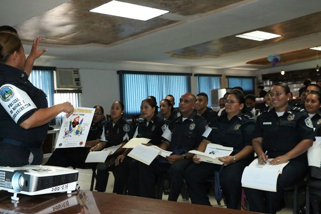 Los programas de Educación y Entrenamiento en Resistencia a las Pandillas (G.RE.A.T) y Prevención de Educación para la Resistencia al Uso y Abuso de las Drogas y la Violencia (D. A.R.E.) que lleva adelante la Policía Nacional serán mejorados en mayor cobertura y beneficios mediante la elaboración de una hoja de ruta. Para ello, instructores del Servicio de Policía de Niñez y Adolescencia se actualizaron en ambos programas durante una jornada de capacitación dictada por la cabo Johana Ho en el salón de conferencias de la sede de la Policía Nacional, ubicada en Ancón, en la que se explicó que se formalizará la labor que realizan en los centros educativos con la captación de información precisa sobre los resultados obtenidos, niños y jóvenes beneficiados. La subcomisionada y jefa del Servicio de Policía de Niñez y Adolescencia, Aida Villarreal, dijo que esta información también servirá para hacerle una hoja de vida a cada instructor que será capacitado durante el mes de noviembre sobre docencia y reconocerles las horas de charlas dictadas y así, puedan ser formalmente docentes, esto a manera de incentivo. Agregó que con esta nueva metodología podrán tener un panorama más claro, reforzar algunos aspectos y reorganizar la agenda de trabajo para el próximo año. Otro de los objetivos, es no solo llevar las charlas a los planteles, sino ir a las comunidades llevándoles el mensaje de prevención, captar a niños y jóvenes en riesgo. Un nuevo material didáctico que será utilizado en el programa D.A.R.E, es otra de las novedades que implementara el servicio de Policía de Niñez y Adolescencia, y se trata del libro de colorear “Amigos protectores” dirigido a niños de 1° y 2° grado, con el que aprenderán medidas de seguridad, como no ir con extraños, entre otros consejos. Con mayor capacitación y mejoras en los programas de prevención, la Policía Nacional a través del Servicio de Policía de Niñez y Adolescencia tiene por meta llegar a más niños y jóvenes para alejarlos de los peligros, haciendo de ellos, agentes multiplicadores de cambio. |