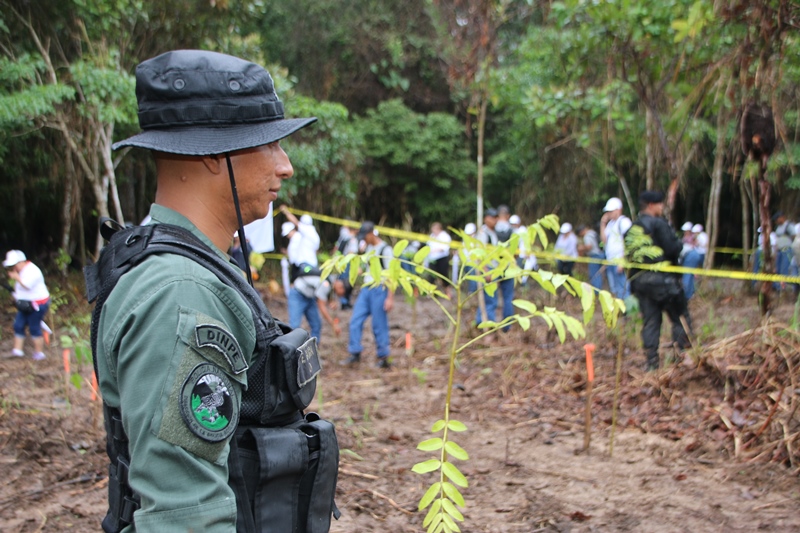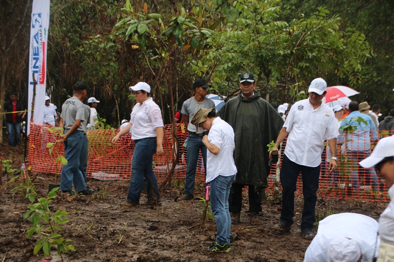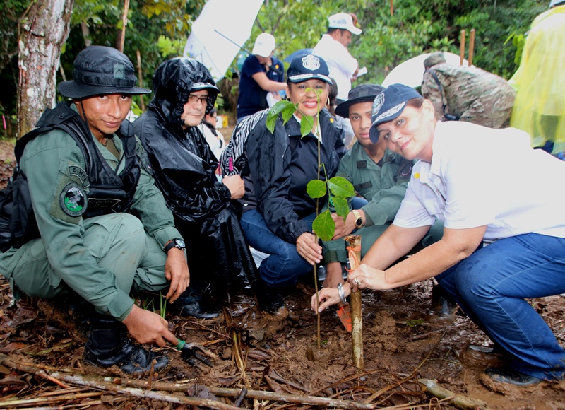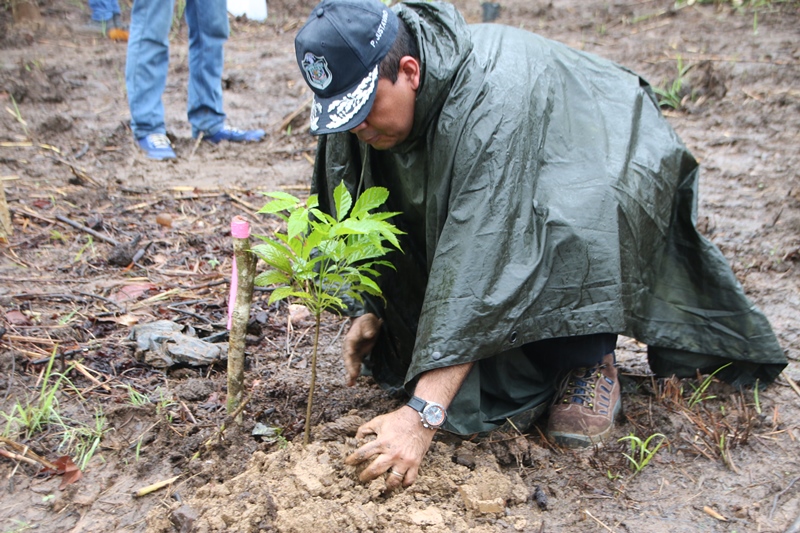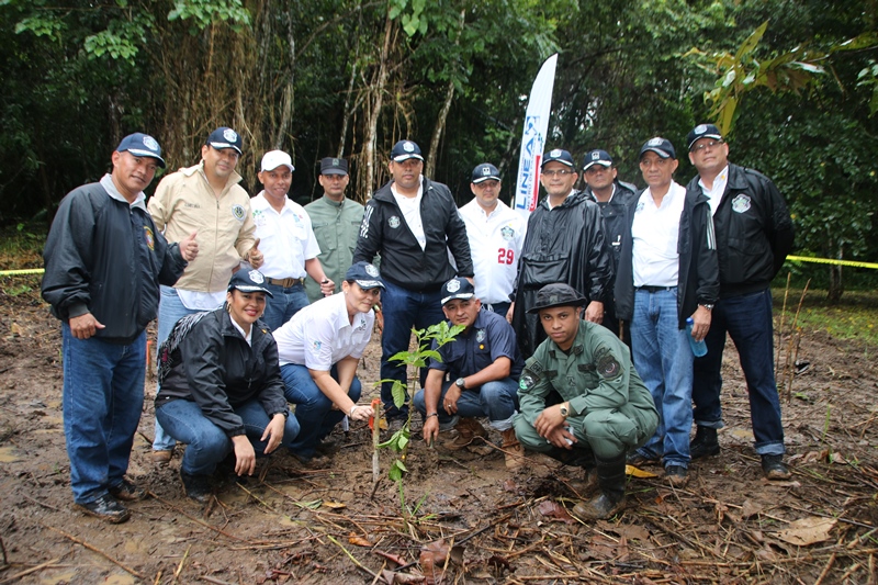 Miembros del Directorio de la Policía Nacional junto a efectivos de la Dirección Nacional de Policía Ecológica y estudiantes del Instituto Superior Policial (Ispol), participaron en el segundo “Día de la Reforestación” con la siembra de plantones en el Parque Nacional Camino de Cruces, ubicada su sede en la Vía Centenario. “La Alianza por el Millón de Hectáreas es una respuesta a la disminución de la cobertura boscosa en el país” dijo el Presidente de la República, Juan Carlos Varela Rodríguez, quien agradeció a los voluntarios por el apoyo. Esta actividad que forma parte de la “Alianza por el Millón” organizada por el Ministerio de Ambiente (MiAmbiente), contó con la participación de ministerios, instituciones públicas, planteles educativos, empresas y organismos privados con el objetivo de recuperar los bosques y los beneficios que proveen. Mejorar el desempeño de la cuenca hidrográfica, la conservación de áreas protegidas, potenciar la biodiversidad, además de lograr la reforestación comercial y el manejo sostenible como un aporte a la economía rural es parte de estos beneficios. La meta fue sembrar 80 mil plantones de diferentes especies maderables, frutales y ornamentales como el cedro, guayacán, espavé, entre otras, en 30 sitios a nivel nacional. La comisionada y Directora Nacional de Policía Ecológica, Elsa Garzón manifestó que la Policía Nacional a través de esta dirección ha emprendido una agenda comprometida con el medio ambiente, organizando y participando activamente en toda iniciativa para proteger y conservar nuestros recursos naturales.