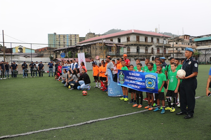 Con el desfile de seis equipos, amenizado por la Banda de Música de la Policía Nacional inició la “Copa Unidad Preventiva Comunitaria (UPC), Unidos Por la Paz” con el apoyo del Club Rotario de Panamá (Rotaract: Rotary Club Partner). Los chicos de El Chorrillo vencieron 5 a 1 a los de Cabo Verde en la categoría sub-13, siendo los equipos encargados del primer encuentro de este campeonato en la cancha del Complejo Deportivo de Plaza Amador. En tanto, Atlético Nacional venció 2 a 0 a Samaria. Mientras, que Curundú se apoderó de la cancha al meter 4 goles ante el equipo Multi de Colores, que anotó 2. Fortalecer los valores y promover la cultura de paz, son parte de los objetivos de esta iniciativa dijo el comisionado Esteban Martínez, encargado del programa de Convivencia Pacífica de la Policía Nacional. Esta competencia deportiva se realizará hasta el mes septiembre con la participación de 90 niños y adolescentes de varias comunidades que forman parte de los programas que desarrollan las unidades preventivas comunitarias de El Chorrillo, Curundú, Samaria y la Sociedad Deportiva Atlético Nacional. |