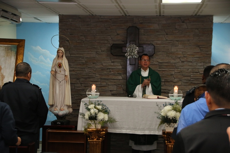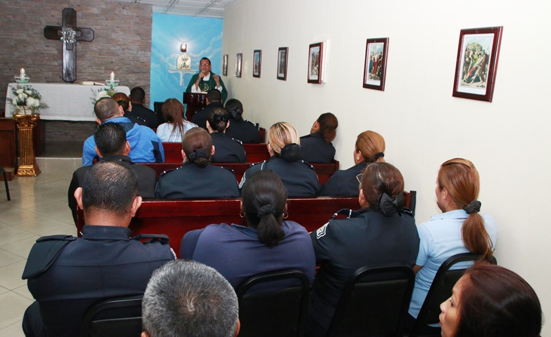 Unidades policiales y miembros no juramentados de la Policía Nacional de servicio en la Dirección de Nacional de Finanzas agradecieron a Dios por cada bendición que reciben, a través de una misa celebrada en la capilla San Miguel Arcángel de la sede de la Policía Nacional en el corregimiento de Ancón. La eucaristía fue presidida por el capellán Edgar Flores y transmitida a través de la emisora Radio María. Se agradeció las funciones que realizan los miembros del Departamento de Finanzas, quienes velan por la certeza, transparencia en esta institución policial. Una vez al mes celebramos este tipo de actividad con el objetivo de dedicar un tiempo de oración y agradecimiento con Dios.