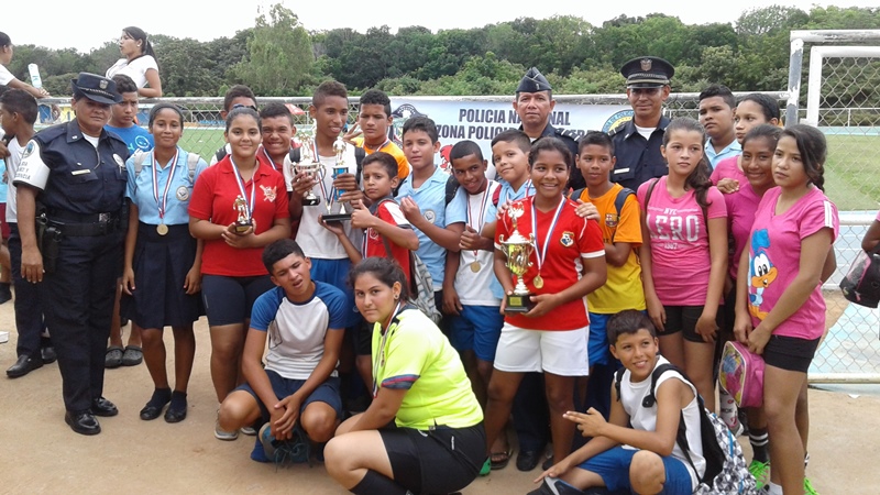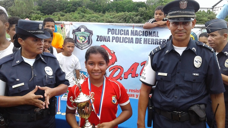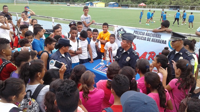 Estudiantes del Colegio Padre Familiar Cano, de Monagrillo integrantes del Programa de Prevención de Educación para la Resistencia al Uso y Abuso de las Drogas y la Violencia (DARE) de la Policía Nacional, culminaron la liga de futbol en la cancha de futbol del estadio Los Milagros. Esta liga fue organizada por unidades de Niñez y Adolescencia de la Zona de Herrera, quienes compartieron con estos jóvenes durante dos semanas inculcándole valores y brindándole momentos de esparcimiento. La Policía Nacional continuará con estas actividades en toda la provincia de Herrera. |
