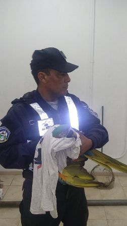 Efectivos de la Unidad Policial del Metro rescataron en horas de la mañana de este lunes 5 de septiembre, una guacamaya que ingresó a la estación, ubicada en el distrito de San Miguelito. El ave fue auxiliada por el subteniente José Ortega y demás uniformados de esta unidad en coordinación con los efectivos de la Dirección Nacional de Policía Ecológica, quienes entregaron el animal a funcionarios del Ministerio de Ambiente (MiAmbiente). La guacamaya se mantendrá en un área especial, donde se le brindaran los cuidados necesarios antes de ser puesta en libertad en un área boscosa protegida.