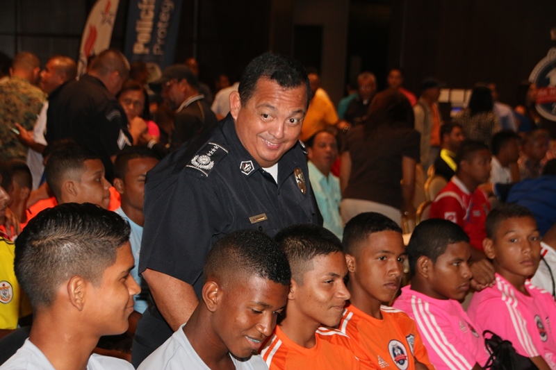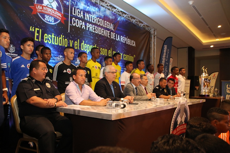Alrededor de 48 equipos de 43 colegios públicos de la ciudad capital y el interior del país, incluyendo la Comarca Ngäbe Buglé, saldrán a la cancha este viernes 9 de septiembre, para dar inicio al Campeonato Intercolegial Copa Presidente de la República 2016, acto inaugural que se llevará a cabo en el Estadio Rommel Fernández. Por segundo año consecutivo la Presidencia de la República, con la organización de la Policía Nacional, Ministerio de Educación e Instituto Panameño de Deportes (PANDEPORTES), lanzan esta liga bajo el lema “El estudio y el deporte son el mejor camino”. El Director General de la Policía Nacional, Omar Ariel Pinzón Marín, junto al Director General de Pandeportes, Roberto Arango y elViceministro Académico de Educación, Carlos Staff, fueron los encargados de dar el anuncio formal del inicio de esta copa a través de una conferencia de prensa y sorteo de los equipos que representan a los diferentes colegios. El jefe policial, Omar Ariel Pinzón Marínexhortó a los panameños y familiares de los jugadores a que asistan a los estadios para apoyar a sus respectivos equipos, ya que estos jóvenes son el relevo generacional de nuestra Selección Nacional de fútbol y el futuro de nuestro país. Igualmente lo hizo el Director General de Pandeportes, Roberto Arango, quien resaltó su compromiso con la juventud, preocupados en seguir adelante a través de las buenos hábitos. En el evento también estuvo presente el Viceministro Académico de Educación, Carlos Staff, quien destacó el gran trabajo articulado de todas las Instituciones para impulsar el deporte. Los equipos que verán acción este viernes, serán el Colegio Monseñor Francisco Beckman quienes se enfrentarán a la Escuela Profesional Isabel Herrera Obaldía, partido que está pautado para horas de la tarde. Los torneos fueron programados en horarios matutinos y vespertinos, los días jueves, viernes y sábado en los estadios: Cascarita Tapia en Juan Díaz, Maracaná en El Chorrera, Muquita Sánchez en La Chorrera y estadios de la provincia de Herrera, Colón y Veraguas. |