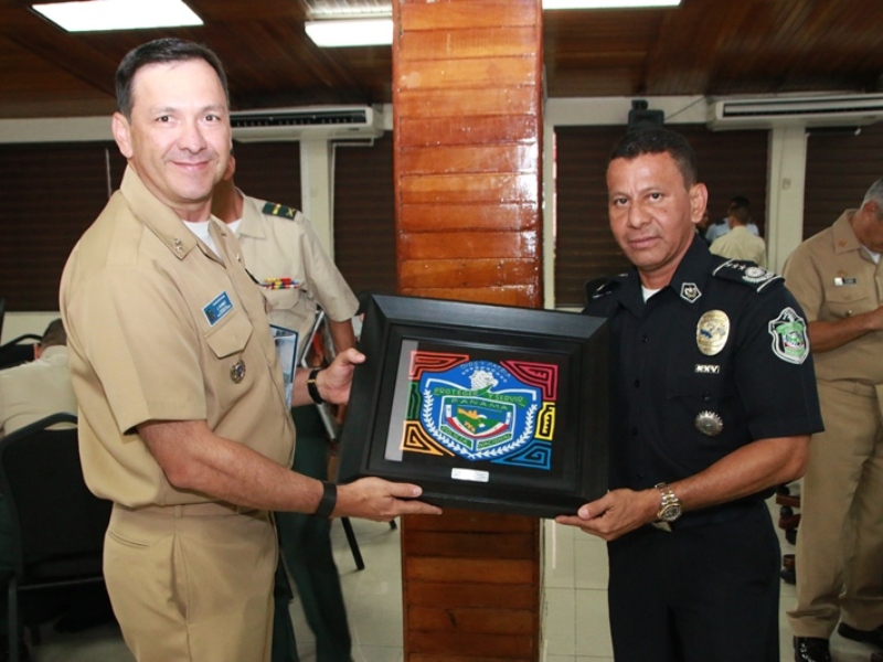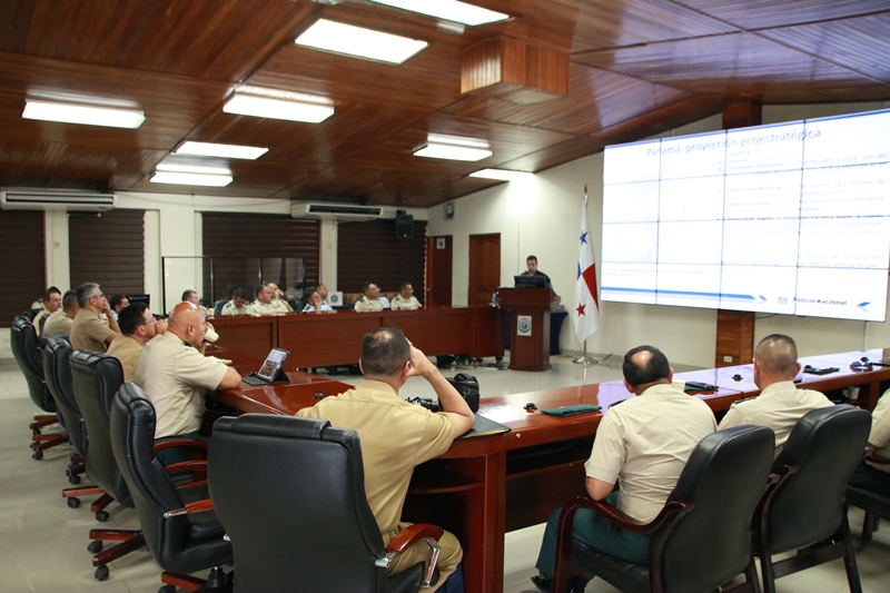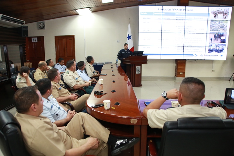 Una delegación de uniformados de la Escuela Superior de Guerra “General Rafael Reyes Prieto” de Colombia, visitaron las instalaciones de la Policía Nacional, como parte del cronograma académico que tiene previsto la realización de prácticas geoestratégicas internacionales del curso de Estado Mayor (CEM). La delegación colombiana compuesta por el subdirector de la Escuela Superior de Guerra, el Contraalmirante Jorge Iván Gómez Bejarano y oficiales de la Fuerzas Militares de Colombia (Ejército, Armada y Fuerza Aérea) de Colombia, México y Perú; fueron recibidos por el Subdirector General Javier Castillo. De igual forma el Comisionado Jorge Escobar Jaramillo, Director Nacional de Docencia les dio la bienvenida a nombre del Director General de la Policía Nacional, Omar Ariel Pinzón Marín. El jefe explicó las tareas conjuntas con todos los estamentos de seguridad del Estado, las autoridades administrativas y las judiciales, fortaleciendo las alianzas estratégicas nacionales e internacionales. También les reseñó la historia y evolución de la Policía Nacional, así como su proyección regional. |