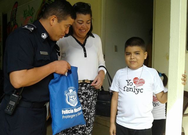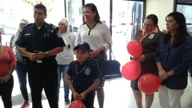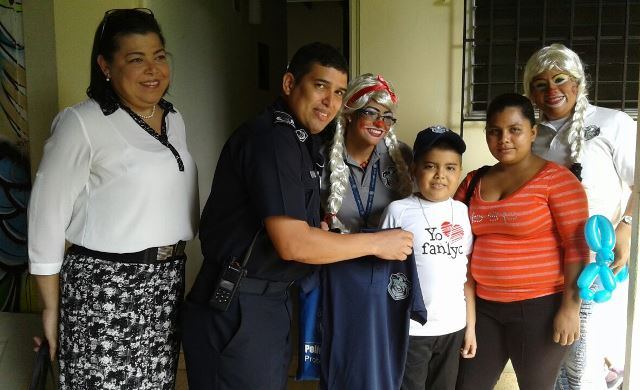 Andrés Mojica, de 8 años de edad, residente en el sector de Burica Centro, distrito de Barú, hizo realidad uno de sus sueños; recorrer las principales calles de la ciudad de David, en un vehículo policial. Andrés es beneficiado con las actividades que realizan Fanlyc en nuestra provincia y actualmente es ahijado del Hospital Chiriquí. El Mayor Víctor Araúz, Jefe del Departamento de Seguridad Ciudadana, en representación del Comisionado Eric Amaya Sánchez, jefe de la 4ta. Zona Policial, y su equipo de trabajo, buscaron al pequeñín a la mencionada fundación; hicieron el recorrido y lo trasladaron al centro hospitalario. En el Chiriquí fue recibido por todo el personal administrativo y médico, donde se le brindó un agasajo y, además, se divirtió con las payasitas de la cuarta zona. También la entidad policial le obsequió algunos souvenirs, entre ellos, suéter, gorras, libros y lápices de colorear. La madre de Andrés, agradeció tan noble gesto de parte de la institución de seguridad pública en nuestra provincia.