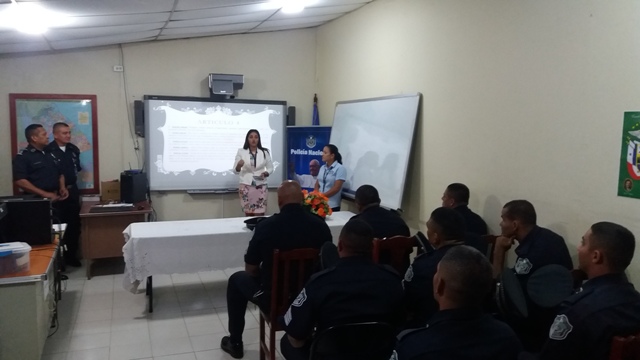 Unidades policiales de la 7ma. Zona de Policía de Los Santos, recibieron charla sobre Femicidio–Violencia Contra la Mujer y la Violencia de Género, como parte de las actividades de la Cruzada Institucional que tiene la Policía Nacional en contra de este flagelo. Los encargados de ilustrar a los presentes sobre estos temas fueron: la Licenciada Melissa Carrión, Psicóloga; el Licenciado Pedro Méndez, encargado de trabajo social; la Licenciada Karina Barrios, Asesora Legal y el Cabo 1ro Rogelio Giménez, enlace de Violencia Domestica de la Zona. Esta charla tuvo como objetivo principal, promover la lucha contra esta violencia y la convivencia pacífica entre compañeros. |