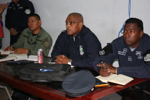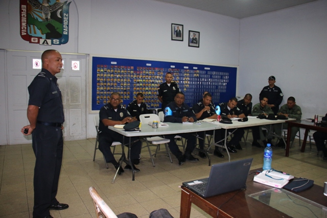 Unas 30 Unidades de la Policía Nacional, entre ellos las unidades de Control de Multitudes, (U.C.M.), Grupo de Apoyo al Servicio (G.A.S) y del Servicio Policial de Seguridad Penitenciaria, se capacitaron sobre el Sistema Penal Acusatorio, en el salón de conferencias del Grupo de apoyo al Servicio (GAS). El periodo de aprendizaje contempla 4 días, iniciando el martes 13 al viernes 16 de septiembre del 2016 y es impartido por el subteniente Luis González de la Oficina de Implementación del Sistema Penal Acusatorio (OISPA). Este curso tiene como objetivo integrar a las unidades policiales a la implementación de este sistema que ya entró en vigencia en la provincia de Panamá. “Se trata de una herramienta facilitadora, para mejor desenvolvimiento en la prestación del servicio” destacó el subcomisionado Oscar Villanueva, de Asuntos Penitenciarios de la Policía Nacional. |