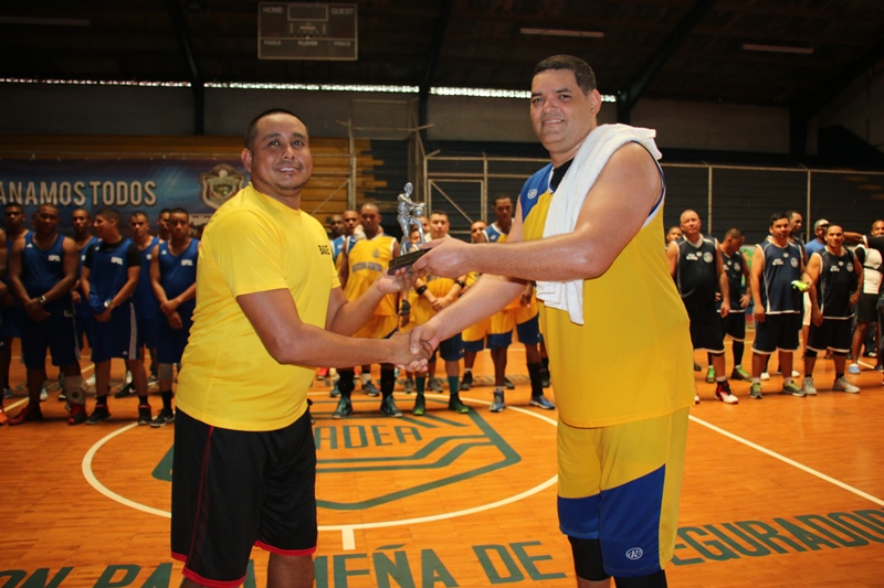 El equipo de baloncesto que representa a la Dirección General de la Policía Nacional, logró coronarse campeón este viernes 16 de septiembre en el Campeonato Interzona de Baloncesto, que se celebró en el gimnasio del club kiwanis, ubicado en el corregimiento de El Chorrillo. Los Escoltas de la Dirección General vencieron al equipo de la Primera Región en un reñido partido que culminó 63 puntos a 50. De esta manera la Primera Región, obtuvo el segundo lugar de la copa; mientras que el tercer y cuarto lugar lo ocuparon la Dirección Nacional de Inteligencia Policial e Instituto Superior Policial, respectivamente. Las distintas zonas y estamentos de seguridad invitados se disputaron la preciada copa; donde el Sargento 2do Luis Arciniega se llevó el trofeo al mejor anotador y el componente civil Ricardo De León, se anotó como jugador más valioso. La emoción de las barras y la murga de la Policía Nacional se hicieron sentir durante todo el evento deportivo, el cual busca mantener la unión y el trabajo en equipo. |