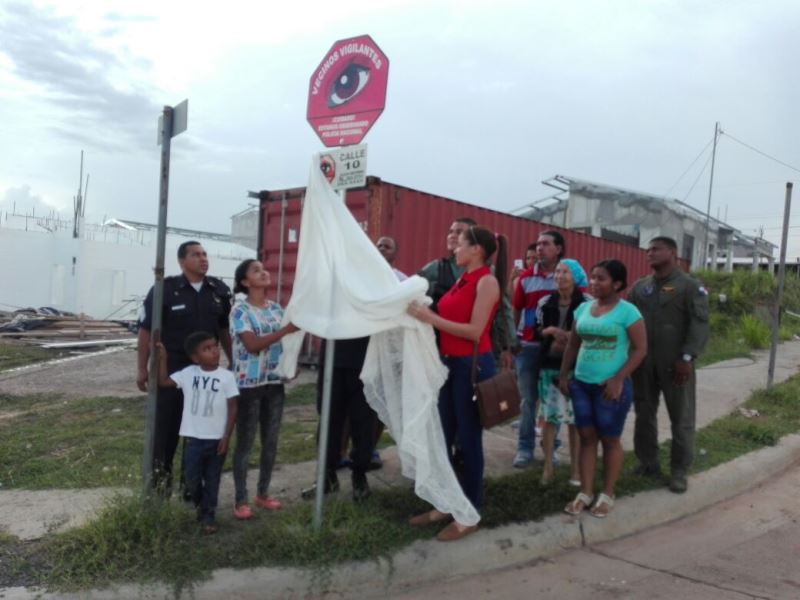 Unidades de la Policía Nacional de servicio en la 10ma. Zona policial Panamá Oeste a través de la oficina de Seguridad Ciudadana inauguró el pasado sábado el programa no. 50 de Vecinos Vigilantes en calle 10 del Residencial Mystic city en el corregimiento del Arado en el distrito de La Chorrera. Este programa es una iniciativa de los miembros de la comunidad quienes tiene como objetivo organizarse para desarrollar planes y estrategias de prevención y así evitar que las personas del mal vivir se apoderen de su comunidad. El acto protocolar inició con la oración de los Vecinos vigilantes a cargo de la señora Fermina checa y le correspondió a la señora Verónica Vergara la lectura del acta de compromiso con la que se sella la Alianza Policía- comunidad LA señora Kendy Rodríguez coordinadora del programa, recibió de manos del Capitán Ednardo Espinoza en representación del comisionado Gilberto Samaniego jefe de la zona, el acta de compromiso que formaliza la creación de este programa. Espinoza los instó a mantener la unidad entre vecinos y a poner en práctica las recomendaciones que le fueron dadas en las docencias que le ofrecieron previamente las unidades de seguridad ciudadana. El cierre del programa se dio con la develación del letrero que anuncia que calle 10, está adscrita a los programas de Vecinos Vigilantes y nada mejor que anunciarlo al l ritmo de la murga de la Policía Nacional para motivar a las otras calles. |
