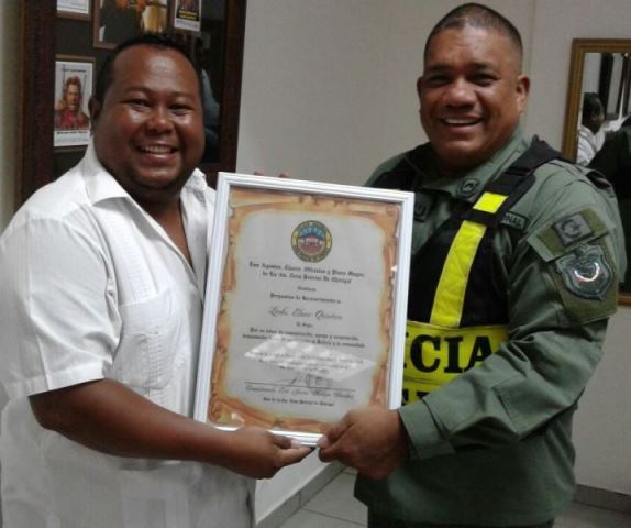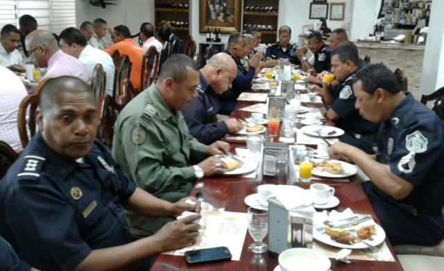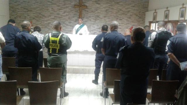 Conmemorando el Primer Año de Gestión del Comisionado Eric Javier Amaya Sánchez, jefe de la 4ta. Zona Policial de Chiriquí, se realizó una misa y un desayuno para las autoridades civiles y a los medios de comunicación social de la provincia. La actividad inició con una misa de acción de gracias, en la Capilla "San Antonio de Padua", ubicada en la Estación Policial de David. Se contó con la presencia de la Fiscal Primera Superior de la provincia, Licenciada Idalgis Olmos; el Jefe de esta Zona Policial junto a su equipo de trabajo y Periodistas. Por otro lado, el desayuno bufete, se dio en un hotel de la localidad, donde estuvieron presentes el Señor Felipe Rodríguez, encargado de la Comisión de Seguridad de la Cámara de Comercio en la provincia y de los diferentes corresponsales de los medios de televisión, radio y prensa escrita. En el desayuno el Comisionado Amaya, entregó pergaminos de reconocimiento a los Periodistas por tan loable labor que vienen realizando en la provincia. El Jefe de la Zona Policial de Chiriquí, agradeció por el apoyo brindado en este año de gestión, sobre todo en una nueva era del Sistema Penal Acusatorio “SPA”, además de profesionalizarse más en lo que es la seguridad ciudadana, técnicas de investigación, en conjunto con la ciudadanía Chiricana. “Agradecemos a todos los periodistas y a la comunidad por el trabajo en equipo que estamos haciendo; porque no es un trabajo solo de la Policía, recordemos que el trabajo de la seguridad es de todos nosotros y al tener buenos frutos es bueno agradecer a todos los que cooperan en este trabajo que día a día estamos logrando y que mantenemos un ambiente de tranquilidad y de Seguridad Ciudadana”, acotó el Comisionado Amaya. |