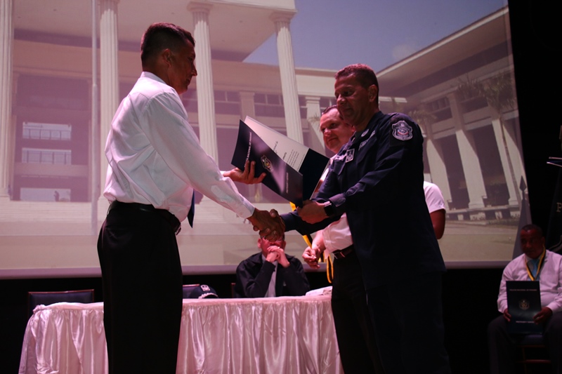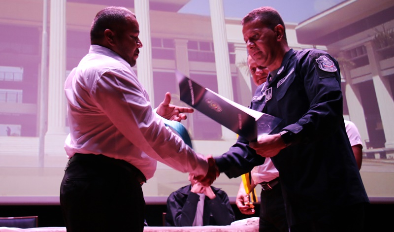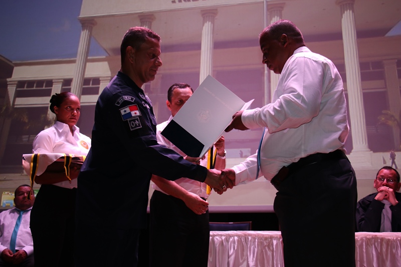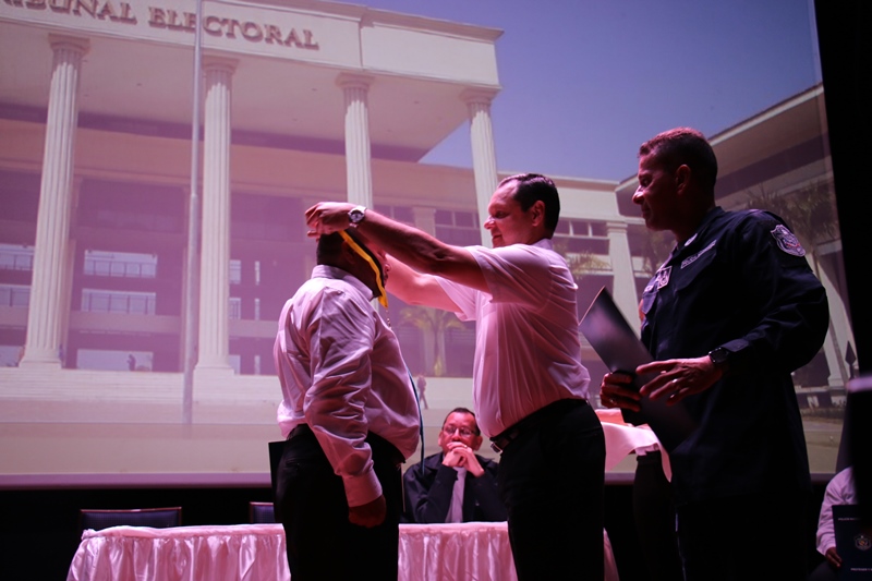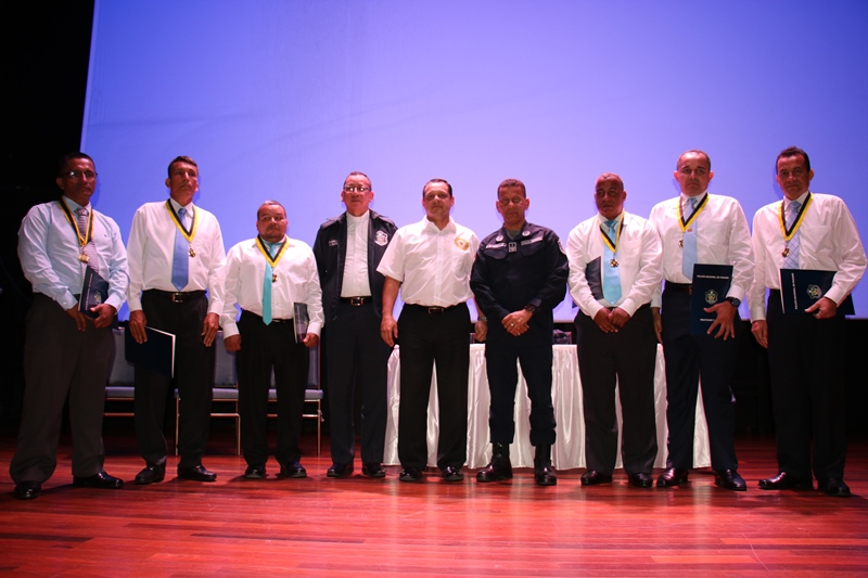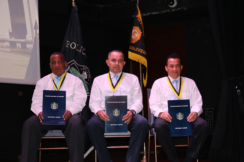 La Policía Nacional condecoró a 7 miembros de la Dirección Nacional de Inteligencia Policial, quienes pasaron al estado de jubilación, como parte del reconocimiento por su profesionalismo, responsabilidad y vocación de servicio durante sus años de labores dentro de la institución. Este evento se llevó a cabo la tarde de este 20 de septiembre en el salón de evento del edificio principal del Tribunal Electoral en la avenida Ancón y contó con la participación del Subdirector General de la Policía Nacional, comisionado Javier Castillo; el comisionado José María Huertas, Director Nacional de Inteligencia Policial, encargado y demás invitados. Los oficiales que pasaron a estado de jubilación son: Capitán Abdiel Denis Acebedo, Capitán Euripides Batista De Gracia, Capitán Ismael Campos Ortega, Capitán Manuel Flores Barrios, Capitán Fermín Pitti Santamaría, Teniente José Martínez Ortega y el Teniente Rogelio Sánchez Martínez. Durante la ceremonia de condecoración se hicieron varias participaciones artística y se mostró un video donde los compañeros de estos oficiales ponderaron su trabajo y el legado que dejaran dentro de la Institución Policial. Tanto el Subdirector General, Javier Castillo y el comisionado Huertas coincidieron que la puertas de la Policía Nacional estarán abiertas y que siempre serán bien recibidos como muestra de gratitud a través del reconocimiento y realce de toda una carrera policial de estos 7 oficiales que por 30 años consecutivos han trabajado hombro a hombro para brindar seguridad a la comunidad, han reafirmado su compromiso de proteger y servir con vocación en la construcción de un mejor país. |
