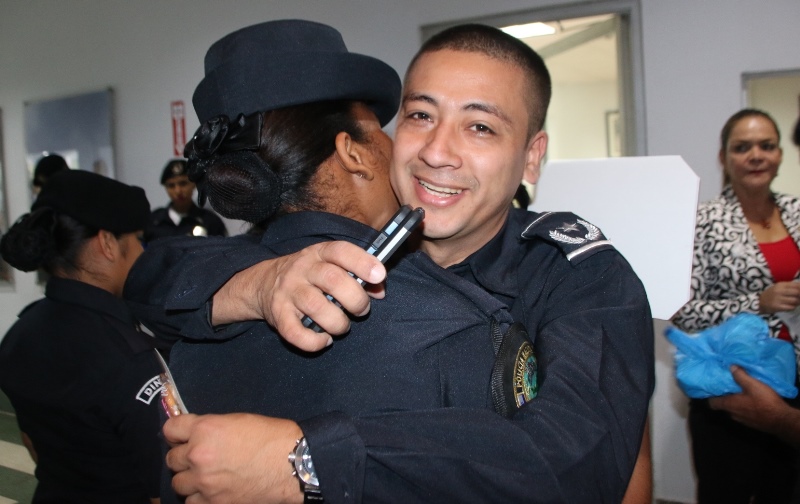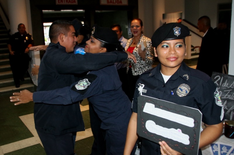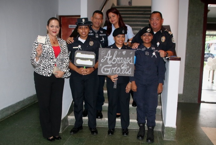 En el marco de la celebración del Día Internacional de la paz, la Policía Nacional organizó en horas de la mañana un ameno recibimiento con “Abrazos Gratis” a cada uno de los miembros que se apersonaban a la institución para dar inicio su diaria faena. La actividad que fue organizada por parte de las trabajadoras sociales de la Dirección Nacional de Bienestar Policial y Familiar, contó con la participación de unidades de Unidad de Control de Multitudes, Grupo Apoyo al Servicio y la Policía de Turismo. La Licenciada Jeanine Alvarengo señaló que esta iniciativa que consiste en ofrecer abrazos a desconocidos con el afán de regalar afecto, busca sensibilizar a las unidades. El Director General de la Policía Nacional, Omar Ariel Pinzón Marín, miembros del Directorio y demás uniformados estuvieron presentes en esta actividad.