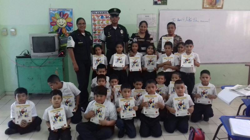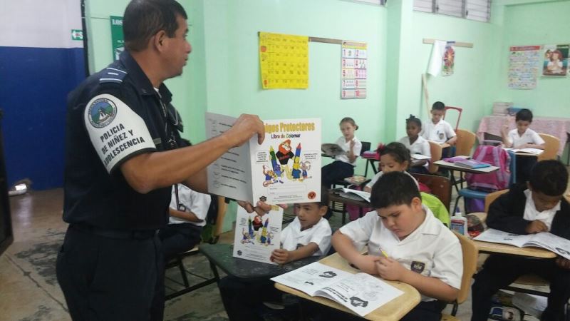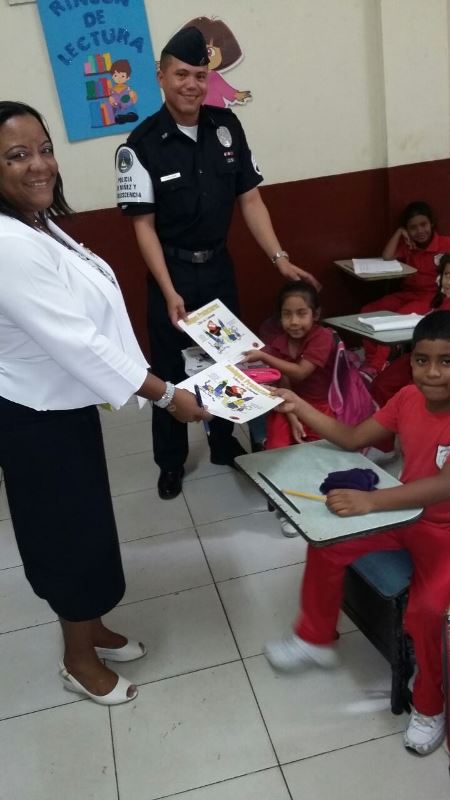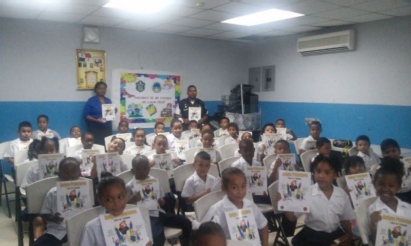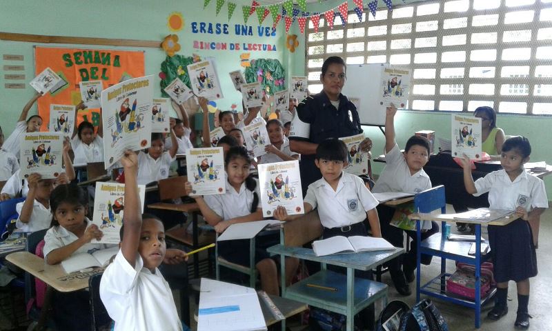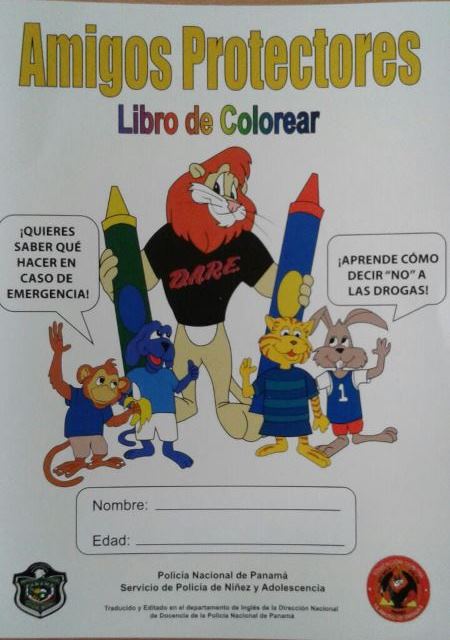 Unas 22 escuelas a nivel nacional recibieron los primeros ejemplares del libro “Amigos Protectores”, que implementa el Servicio de Policía de Niñez y Adolescencia de la Policía Nacional como nuevo proyecto de orientación en las escuelas del país. Este libro de colorear tiene por objetivo reforzar la enseñanza del programa de Prevención de Educación para la Resistencia al Uso y Abuso de las Drogas y la Violencia (D.A.R.E.). en estudiantes de 1°, 2° y 3° grado. En cuatro lecciones ilustradas en imágenes para colorear, el León Darío, personaje de D.A.R.E. junto a sus amigos advierten a los alumnos sobre los peligros en la calle, precauciones al cruzar la calle, usar casco protector cuando utilizan sus bicicletas, no hablar con extraños, entre otros consejos. Los niños se divierten y comparten con sus compañeros de clases a la vez que aprenden, dijo la subcomisionada y jefa del Servicio de Policía de Niñez y Adolescencia, Aida Villarreal. “Se trata de llevar a ellos el mensaje de prevención en un lenguaje apropiado y entretenido”, destacó. Se tiene previsto entregar más de 50 mil ejemplares y que cada año serán actualizados. Este libro elaborado con el apoyo de la Embajada de Estados Unidos, será entregado en todos los centros escolares a nivel nacional bajo la orientación de los instructores del Servicio de Policía de Niñez y Adolescencia.