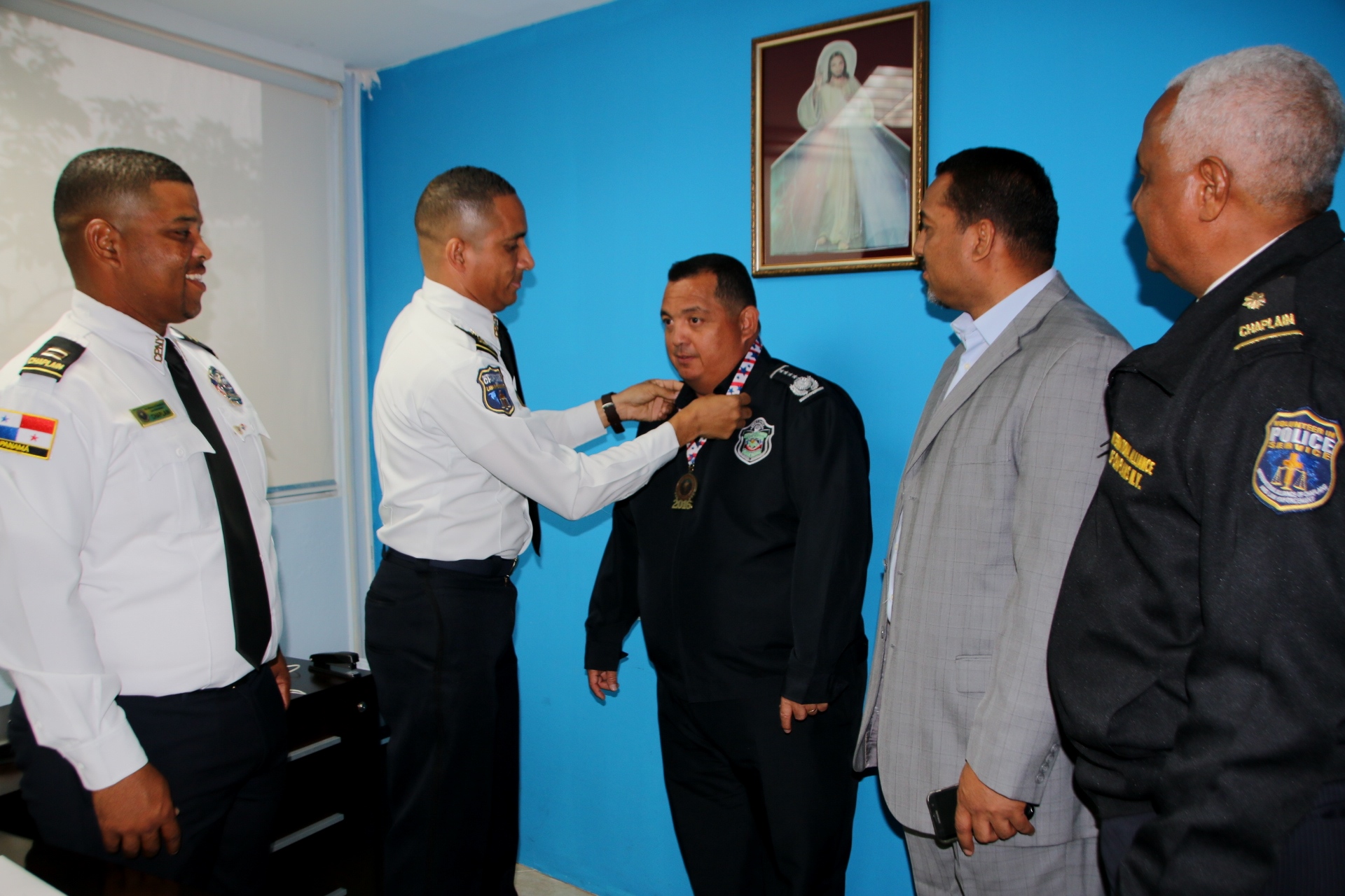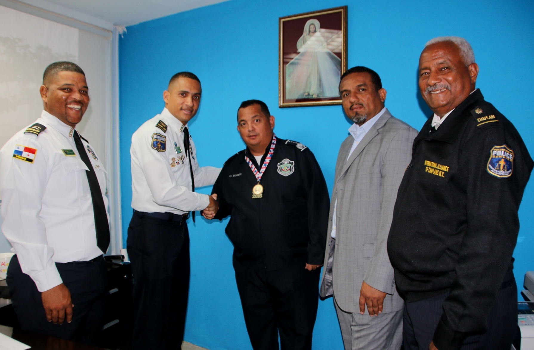 El Director General de la Policía Nacional, Omar Ariel Pinzón Marín, recibió la grata visita de cortesía de los miembros de la Alianza Internacional de Capellanes y Personal de Seguridad Nacional, en la sede principal de la entidad, ubicada en Ancón. El Director de la Policía Nacional recibió “La Medalla de la cruz y la balanza” de manos del Director Nacional de la Policía Voluntaria en Panamá, Coronel Jorge Cook. Durante su visita los miembros se reunieron con el Director, donde tocaron varios temas. La Alianza Internacional de Capellanes y Personal de Seguridad Nacional, desarrolla labores de tipo social a favor de los más necesitados, de igual modo mantiene programas de visitas a cárceles, hospitales, escuelas, lugares de ancianos. Tanto en los Estados Unidos como en los demás países que lo integran. |