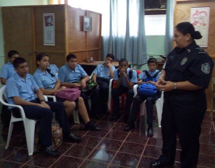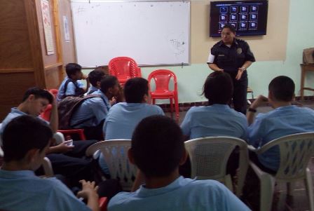 Unidades de la Policía Nacional de servicio en de la Niñez y Adolescencia de la 4ta. Zona Policial de Chiriquí, continúan ofreciendo los programas de desarrollo humano, en los diferentes centros educativos de la provincia. En esta ocasión la Subteniente María González, capacitó a unos 25 integrantes del Grupo JOCODE del Colegio Beatriz Miranda de Cabal, ubicado en el distrito de Dolega, con el tema “Trata de mujeres y niños”. Los estudiantes que fueron capacitados se encargaran de reproducir y orientar a los demás estudiantes de los diferentes niveles, con la finalidad de que se instruyan en este importante tema. En la capacitación estuvo presente la profesora Magbis Palacio, Coordinadora del programa del plantel. Estos grupos de JOCODE de los distritos de David y Dolega, cumplen con uno de los componentes del programa que es llevarles los conocimientos de todos los temas concernientes a la juventud de esta provincia.