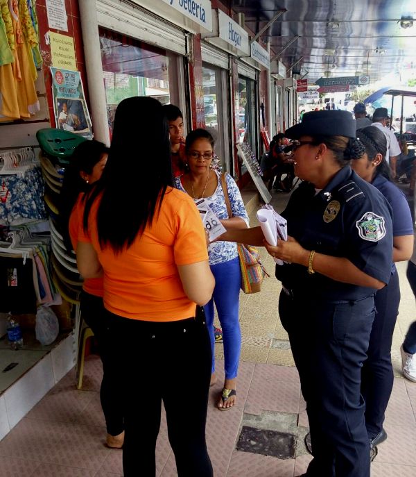 Volantes en medidas de seguridad y prevención fueron distribuidas en la avenida central de Penonomé por unidades de la Segunda Zona Policial, precisamente de la oficina de Seguridad Ciudadana, Género y estudiantes de la carrera de Licenciatura de Investigación Criminal y Seguridad de Penonomé. Cabe destacar que esta actividad tiene como objetivo fundamental, orientar a la ciudadanía para que ponga en práctica medidas de autoprotección y prevención de presentarse alguna situación como robos, hurtos u otros. La Subteniente Susana Salas comunicó que esta actividad se continuará realizando en diferentes lugares, para que las personas estén alertas de los amigos de lo ajeno, de igual manera orientar a las comunidades en temas de violencia domestica para que no sean víctimas de estos delitos y denuncien, detalló la uniformada. |