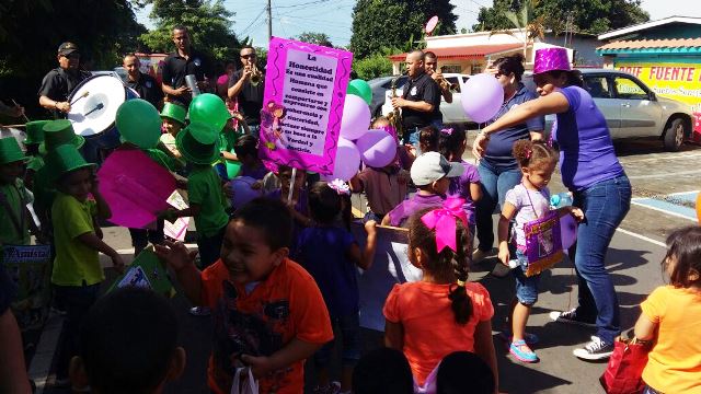 Panamá, 28 de septiembre de 2016. Estudiantes, docentes y padres de familia del Centro de Orientación Infantil (COIF), Fuente del Saber, de la 4ta. Zona Policial de Chiriquí, realizaron una caminata en conmemoración a la semana de los valores. La actividad se desarrolló en el corregimiento de David, específicamente en calle sexta, próximo al centro educativo, con la presencia de los niños y niñas de los diferentes niveles de maternal, pre-kinder y kínder, quienes resaltaron con coloridas pancartas los valores de la amistad, el amor y la honestidad. La subteniente Beatriz Aparicio, directora del COIF , manifestó que la finalidad de esta actividad es motivar a toda la ciudadanía para que desde edades tempranas fomenten la práctica de los valores en la familia que son tan necesarios para la convivencia humana.