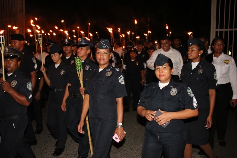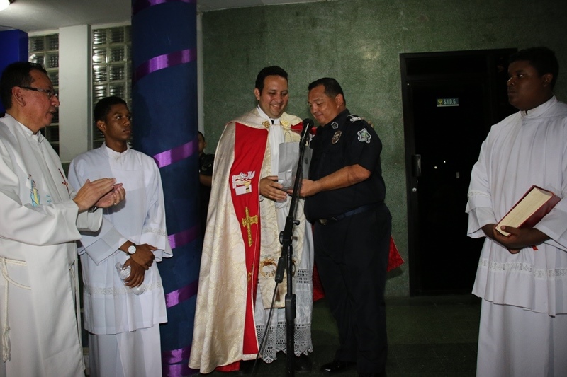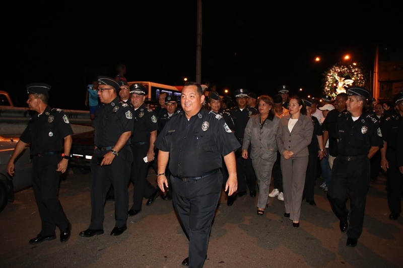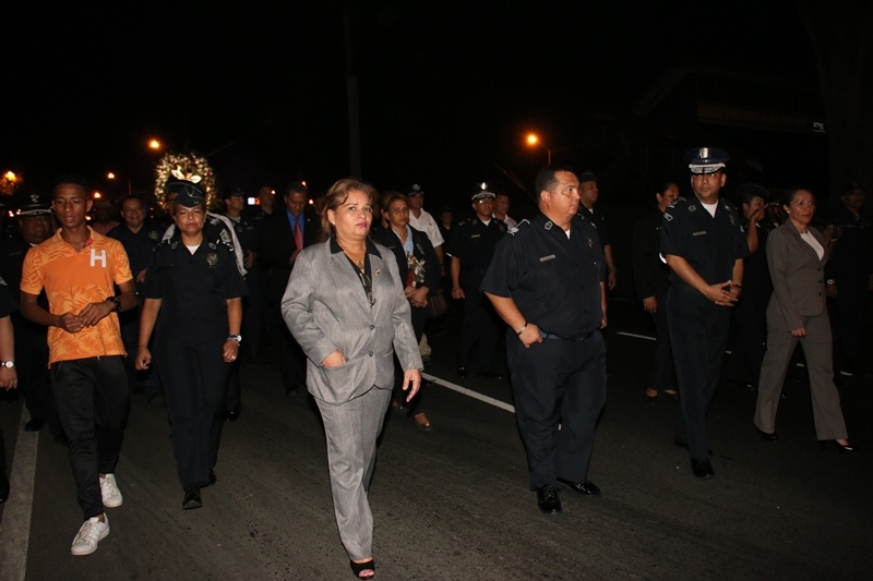 Panamá,29 de septiembre de 2016. Unidos en la fe, efectivos policiales y personal no juramentado de diferentes dependencias de participaron de la procesión en honor a San Miguel Arcángel, santo patrono de la Policía Nacional. E Director General de la Policía Nacional, Omar Ariel Pinzón Marín y miembros del Directorio caminaron desde la subestación policial ubicada en San Miguel, corregimiento de Calidonia hasta la sede de la Institución en Ancón. “San Miguel Arcángel representa al policía en su lucha contra la delincuencia y defensor de la justicia”, dijo el Director de la Policía Nacional. Escoltado por los cadetes de la Escuela de Oficiales de Policía Doctor Justo Arosemena (Esopol) y los integrantes de la Banda de Música, la imagen de San Miguel Arcángel recorrió la vía Omar Torrijos con lanza en mano, que lo representa como soldado de Dios, presto a defender a todo devoto en la batalla contra el mal. Posteriormente, fue recibido en la sede policial, donde se realizó una Eucarística dirigida por el padre Edgar Flores, Capellán de la Policía Nacional y Fernando Fontane, párroco de la iglesia Espíritu Santo de la 24 de Diciembre. |