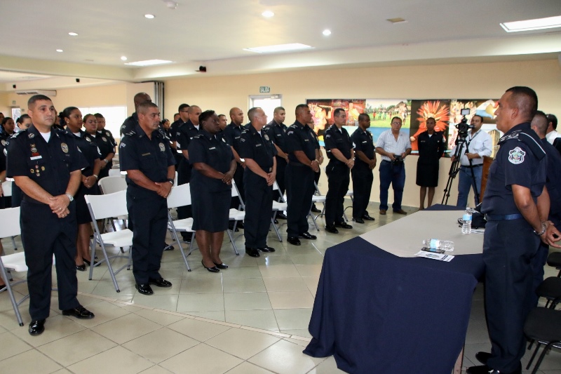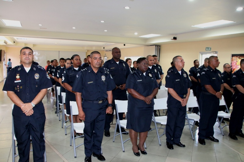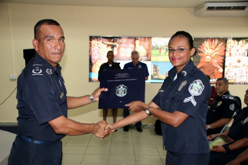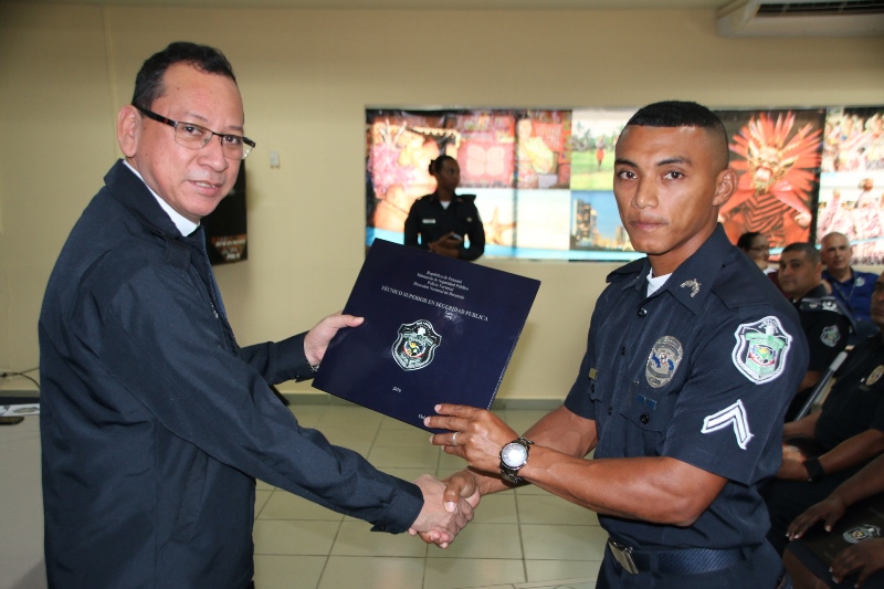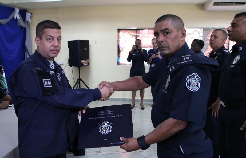 Unos 60 uniformados de diversas Direcciones, Departamentos y Dependencias de la Policía Nacional, se graduaron este jueves con el título que los confiere como Técnicos Superiores en Seguridad Pública, acto que se llevó a cabo en el Instituto Superior Policial Presidente Belisario Porras(ISPOL), ubicado en Gamboa. El programa ha graduado a 645 unidades promoviendo el desarrollo formal y humano de las unidadades para un mejor desempeño dentro de la sociedad, toda vez que con estos conocimientos expanden sus horizontes encaminados al profesionalismo y la renovación integral. El Director Nacional de Docencia, Jorge Luis Escobar resaltó el esfuerzo que realiza el Director General de la Policía Nacional, Omar Ariel Pinzón Marín, para despertar la vocación de servicio entre los hombres y mujeres de uniforme, permitiéndoles de igual manera elevar el nivel académico. El Director Nacional de Docencia, comisionado Jorge Luis Escobar, junto a oficiales e invitados especiales presidieron la ceremonia de graduación.