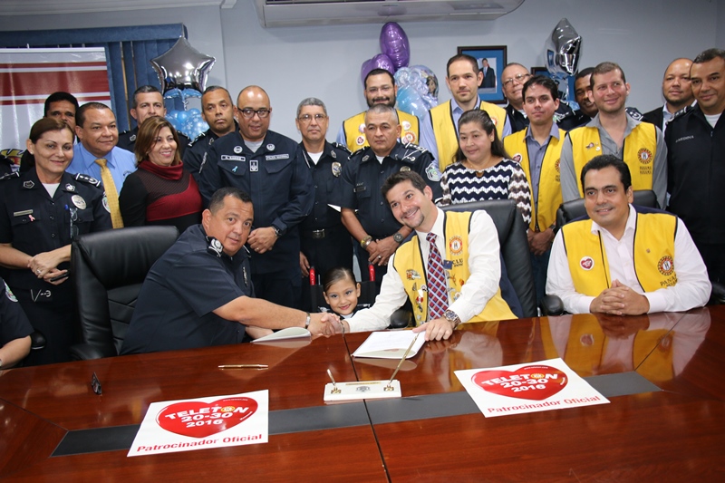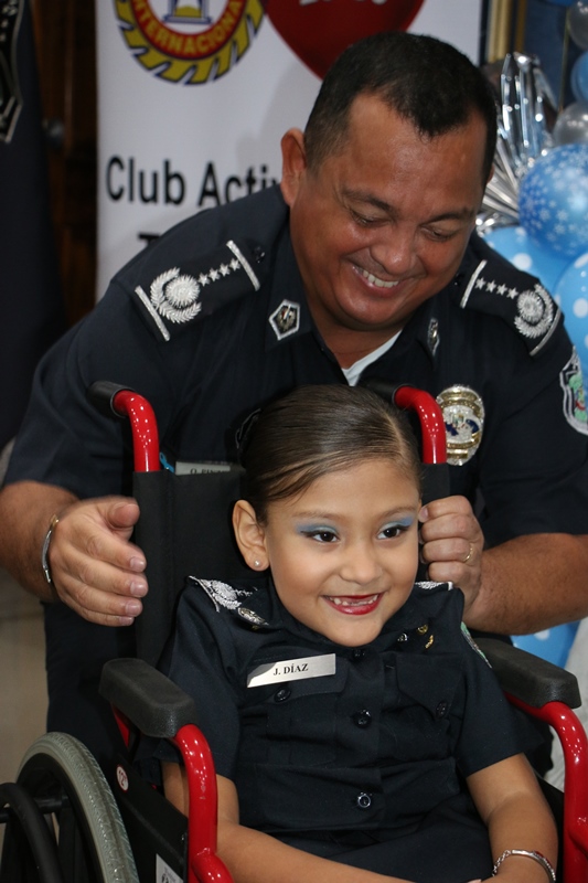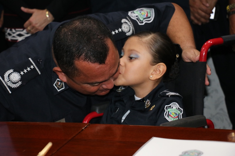 Luciendo el uniforme policial, la niña símbolo de la Teletón 20-30 de este año 2016 Janeth Alvira Díaz Santos, fue recibida por el Director General de la Policía Nacional, Omar Ariel Pinzón Marín y miembros del Directorio, en la sede principal de esta institución, ubicada en Ancón. Con la visita de la niña Janeth acompañada por su madre y Directivos del Club Activo 20-30, la Policía Nacional oficializa su compromiso de apoyar por 14ava vez esta noble causa, firmando el contrato que lo acredita como patrocinador oficial. “Los felicitamos por el gran trabajo que realizan año tras año como club rotario 20-30 en beneficio de aquellas personas, que lo necesitan, donando su tiempo, un trabajo hermoso, en pro de la niñez panameña futuro de nuestro país” destacó el Director General de la Policía Nacional Omar Ariel Marín. Añadio que la Policía Nacional siempre dice presente en esta noble causa, porque todas las unidades y miembros no juramentados que la integran son conscientes del compromiso social que se tiene, haciéndolo de corazón, pensando siempre en que como institución nos debemos a la ciudadanía. La pequeña Janeth de 7 años, oriunda de la comunidad de Quebrada de Vueltas en Rio Sereno, provincia de Chiriquí, recibió muchos obsequios e igualmente la grata sorpresa del personaje de una de las princesas de Disney “Frozen”. La hermosa niña quien padece de Espina Bífida e hidrocefalia, emocionada cantó junto a su personaje favorito de Disney, la canción de esta película “libre soy”. Este año los fondos de la Teletón 20-30 están destinados a la implementación de nuevas técnicas de avanzada Tecnología, mediante la creación de Centros de Estimulación Multi-Sensorial (CEMS) con mejoras y fortalecimiento a los servicios que brinda el Instituto Panameño de Habilitación Especial (IPHE). El presidente del Club Activo 20-30, Alexander Cooban, en nombre de este organismo hizo entrega al Director General de la Policía Nacional, un certificado de agradecimiento por ser patrocinador oficial 2016 del teletón que este año tiene como lema “Creemos en ti”. Y para culminar su visita a en la Policía Nacional la Niña símbolo de la teletón 20-30, presenció la marcha de la Banda de Música de la Institución. |