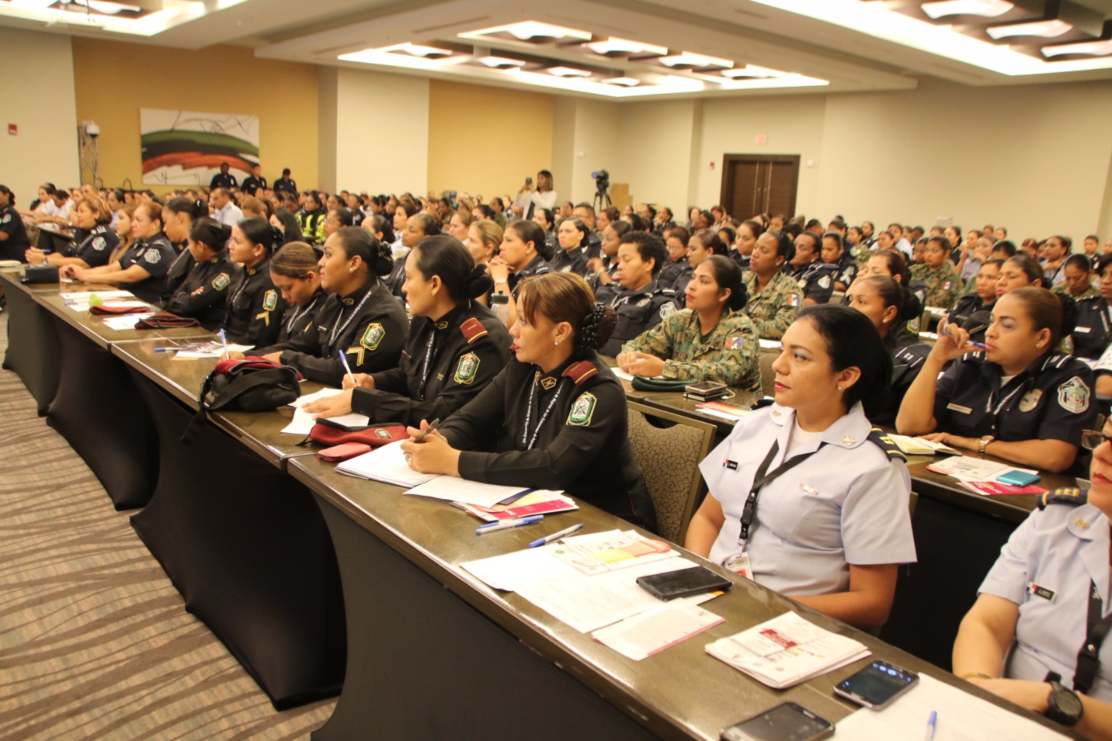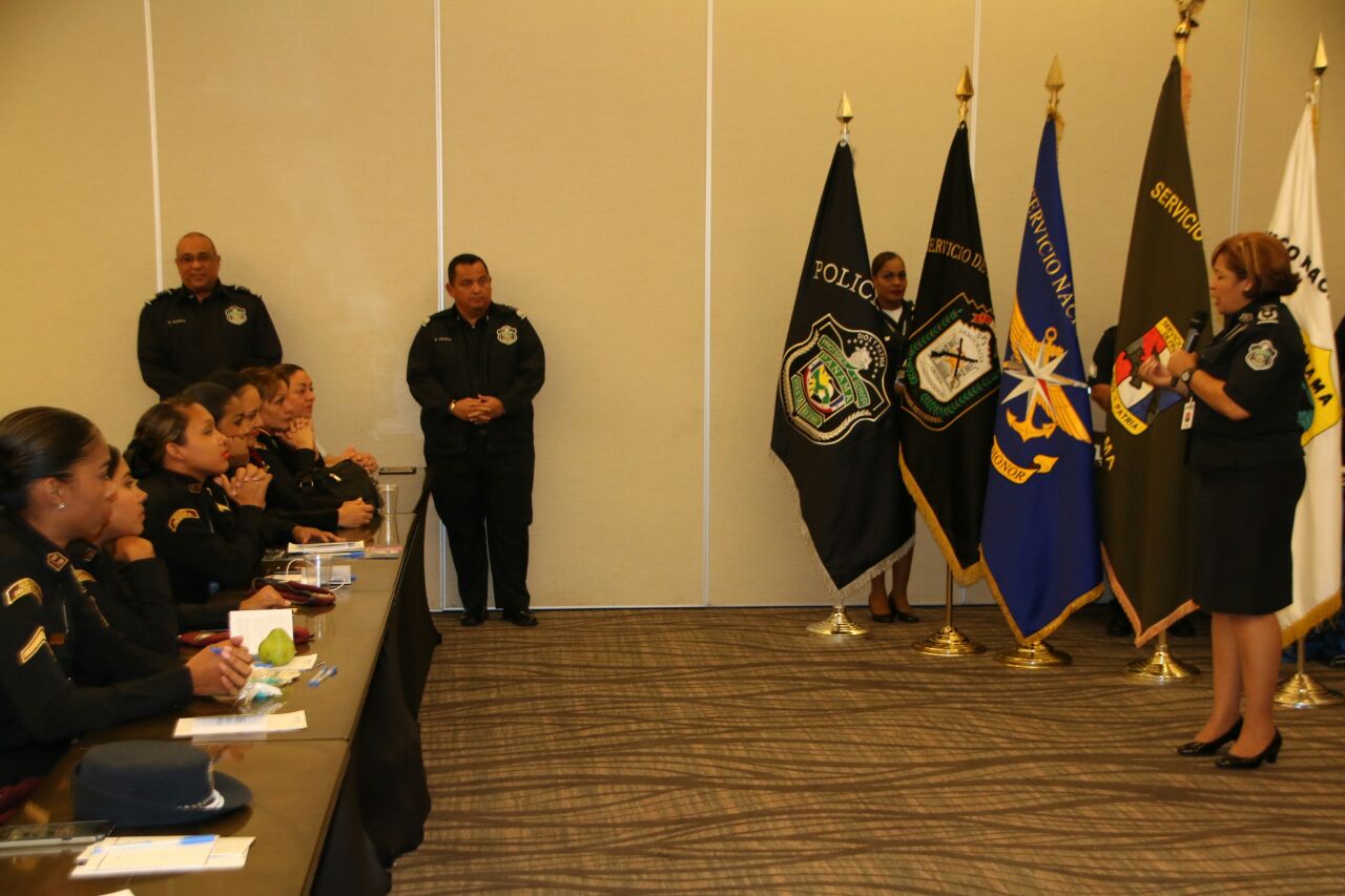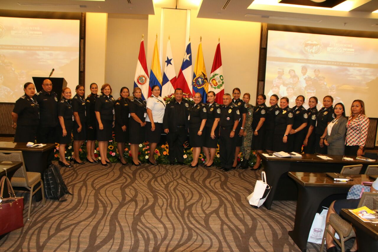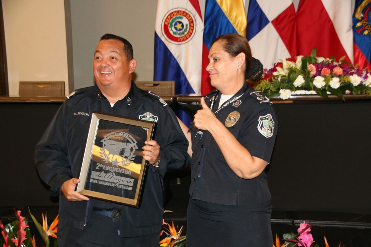 "Nos llena de mucho orgullo y satisfacción contar en nuestra institución con el 20% de mujeres dentro de la fila y seguirán sumándose más, porque representan un pilar fundamental para la fuerza pública", con estas palabras el Director General de la Policía Nacional, Omar Ariel Pinzón Marín, dio por clausurado, el 2do. Encuentro de Mujeres de Estamentos de Seguridad. El evento en mención reunió en nuestro país a más de 300 mujeres representantes de las instituciones de seguridad de países Suramericano y Panamá, con la finalidad de impulsar la modernización y adaptación de los estamentos que brindan la protección a los ciudadanos. Durante dos días de debates, intercambio de experiencias y actividades encaminas a generar propuesta que contribuyan al mejoramiento de estrategias de transformación dentro del contexto de igualdad de género e incrementar el aprovechamiento profesional y la participación de la mujer como elemento importante dentro de nuestras organizaciones. Nuestro país contó con representación de unidades femeninas de la Policia Nacional, Servicio de Protección Institucional, Servicio Nacional Aeronaval y el Servicio Nacional de Fronteras. En la clausura se hizo entrega de certificado de participación a todas las mujeres de los Estamentos de Seguridad. |