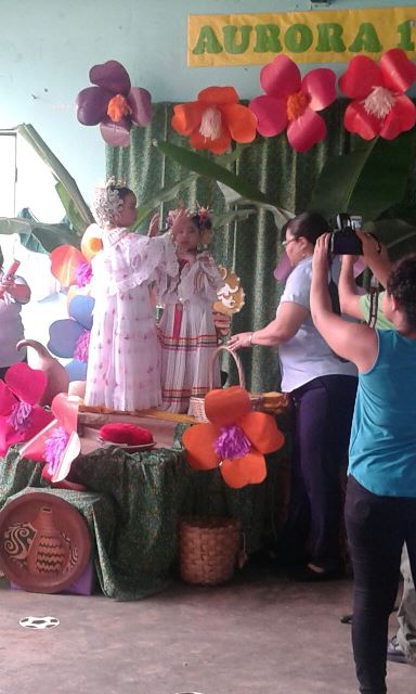 Celebrando la “Semana del Campesino”, estudiantes y docentes del Centro de Orientación Infantil, “COIF” Fuente del Saber, de la Policía Nacional, en la provincia de Chiriquí, realizaron varias actividades. El objetivo principal de este evento es inculcarles a los niños el respeto y valor que deben darles al folclore y al hermoso traje típico Nacional como es la Pollera Panameña. El festejo inicio con la coronación de su majestad Aurora Espinoza del Maternal “A”, quien hizo su despliegue con mucho esplendor luciendo su traje típico. Todos los niños de los niveles de Maternal, Pre kínder y Kínder efectuaron presentaciones folclóricas dirigidas por la Instructora Diolva Sánchez. Para finalizar con la semana del Campesino se dio una Caravana por las diferentes calles de la ciudad de David, donde fueron acompañados por la banda de música de la 4ta. Zona Policial de Chiriquí, quienes deleitaron a todos los presentes con sus tonadas. La Subteniente Beatriz Aparicio, encargada del COIF en Chiriquí, agradeció a los niños, maestros y padres de familia por el apoyo brindado en esta actividad. |