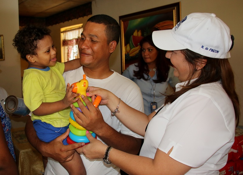 La Barriada Bella Esperanza, ubicada en Bique, distrito de Arraiján hizo honor a su nombre con la visita de Las Damas A.S.U.L. (Armonía, Solidaridad, Unidad y Lealtad), quienes se trasladaron a la casa del sargento 1° Oriel Ingran para decirle: ¡no estás solo, cuentas con nosotros! En su hogar, la alegría se dejó sentir, más, ante la dulce sonrisa de su pequeño hijo Oyden de tres años, quien emocionado recibió con un abrazo a estas damas, esposas de oficiales de la Policía Nacional quienes llevaron para él varios paquetes de pañales desechables, latas de formula láctea especial, medicamento de uso dermatológico y juegos didácticos tan necesarios para la estimulación y aprendizaje de un niño que padece Síndrome de Down. La fe que sus padres profesan a Dios, no les permite caer ante los difíciles momentos que atraviesan. Inquieto como cualquier niño, Oyden, ajeno a su estado de salud juega y sonríe. Con verlo tan vivaz, nadie pensaría, que ya paso por una operación de corazón abierto y padece de la enfermedad de Hirschsprung, que es una obstrucción del intestino grueso. “Son muchas las pruebas, pero Dios me fortalece para poder seguir adelante”, dijo el sargento Oriel Ingran, mientras agradecía este gesto de solidaridad al lado de su esposa Janina Squirts con Oyden en brazos, quien inquieto como cualquier niño, anhela tocar sus nuevos juguetes. La presidenta de Las Damas A.S.U.L., Nacelys Ulloa de Pinzón dijo que la entrega de esta donación se coordinó a través de la Dirección Nacional de Bienestar Policial y Familiar, que cuenta con trabajadoras sociales comprometidas como la licenciada Jeanine Alvarengo, quien captó este caso. “Apenas supimos de este caso, Oyden nos robó el corazón, además de conocer a su padre, quien actualmente labora en el Servicio de Policía de Turismo y en 15 años ha demostrado ser honesto y leal con la institución, educando a sus hijos con digno ejemplo de lucha y perseverancia”, manifestó Ulloa de Pinzón. A final, no se dice adiós, sino hasta luego sellado con un abrazo que indica el cariño que los unirá siempre. El espíritu de Las Damas A.S.U.L. es brindar la mano amiga a todo aquel que necesite, más aquellos que a diario entregan su mejor esfuerzo para servir a la comunidad como lo son los policías.