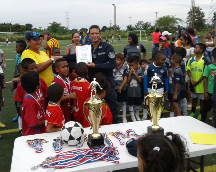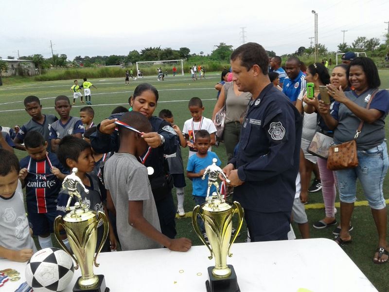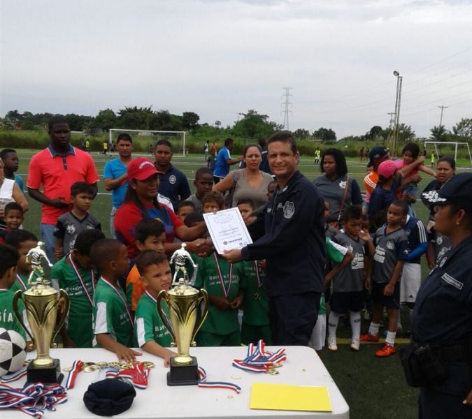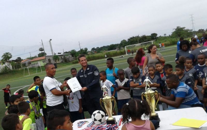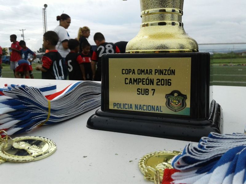Este sábado 22 de octubre culminó la primera versión de la “Copa Omar Pinzón”, torneo de la Policía Nacional que se lleva a cabo en las categorías sub 7 y sub 11 en la cancha de fútbol de Santa Isabel ubicada en Pacora. En este torneo participan 24 equipos quienes fueron sumando puntos en cada juego ganado. En la categoría Sub 7 resultó ganador el Atlético Nacional Ancón con 22 puntos seguidos por el Atlético Vanguardia. En tanto, en la categoría Sub 11 se alzó ganador el equipo del San Francisco con 28 puntos, seguidos del equipo de los Potros. Le correspondió al Comisionado Wellington Zambrano Inspector General, en representación de El Director General de la Policía Nacional, Omar Ariel Pinzón, entregar la copa a los equipos ganadores. Estas actividades se realizan con fines recreativos auspiciados por el programa Convivencia Pacífica, para el entretenimiento familiar y lograr el cultivo de los futuros futbolistas del país.