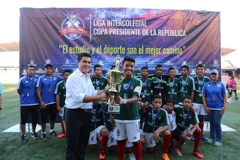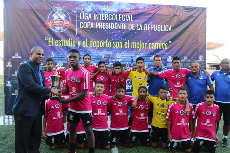 El I.P.T La Concepción obtuvo el tercer lugar al vencer 3-0 al equipo del Colegio José María Barranco en la categoría sub 15, en un partido de la Copa Presidente de la República 2016, que se llevó a cabo en el estadio Maracaná ubicado en el corregimiento de El Chorrillo. En tanto, en la sub 18 el I.P.T de Aguadulce se llevó el tercer lugar al vencer 2-0 al I.P.T de Colón. Los premios a los equipos tanto como tercer y cuarto lugar fueron entregados por el subdirector de la Policía Nacional, Javier Castillo, funcionarios de la Presidencia de la República y de Pandeportes. Este domingo 30 de octubre se llevara a cabo la gran final de la Copa Presidente 2016 en el estadio Maracaná del corregimiento de El Chorrillo en la sub 15 y sub18. |
