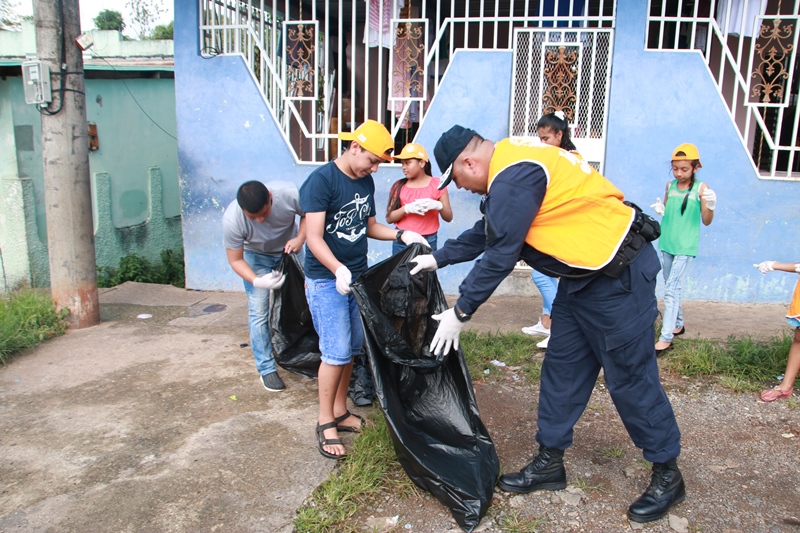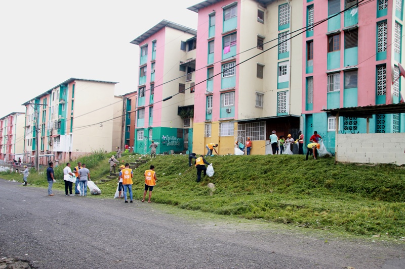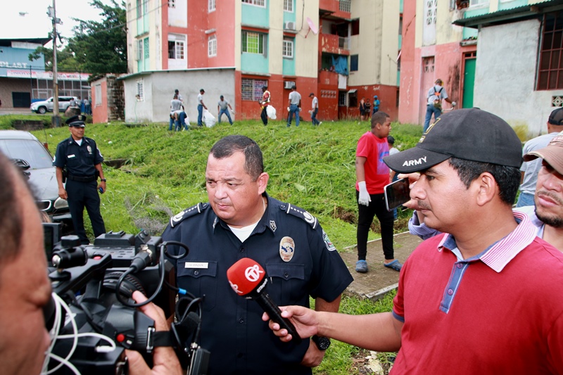 Unidades de la Policía Nacional de servicio en la 15va Zona Policial y estudiantes del Instituto Superior Policial de la Policía Nacional realizaron una jornada de limpieza este sábado 29 de octubre en los alrededores de los multifamiliares ubicados en San Joaquín, corregimiento de Pedregal. “La Policía Nacional se hace presente reafirmando su compromiso con la comunidad, esta vez en una jornada por un Panamá más limpio. Igualmente, continuaremos apoyando todas las actividades que sean de beneficio para sus residentes”, dijo el Director General de la Policía Nacional, Omar Ariel Pinzón Marín. Pinzón Marín se trasladó al lugar para supervisar estos trabajos, a la vez que conversó con los residentes del área, quienes se mostraron muy contentos por el apoyo que brindó la Policía Nacional en esta limpieza, que también refuerza el acercamiento Policía-Comunidad y la convivencia pacífica. “Tenemos que agradecer a los líderes comunitarios que se han involucrado fuertemente en este gran trabajo”, destacó el jefe policial. Los uniformados junto a los estudiantes del Ispol, miembros de la comunidad y de la Iglesia Católica recolectaron chatarras, enseres y todo tipo de desechos, lográndose recoger más de 50 toneladas de basura en este sector. La jornada también se realizó con el apoyo del Ministerio de Salud y la Autoridad de Aseo Urbano y Domiciliario (AAUD) con el objetivo de mantener espacios más limpios y sanos, libres de enfermedades como el Dengue, Chikungunya, entre otras.