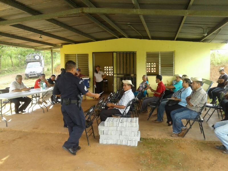 Unidades de la Policía Nacional de servicio en el Departamento de Seguridad Ciudadana, Área “E” de Ocu; y las Subdirecciones de Inteligencia Policial y de investigación Judicial se reunieron con moradores de la comunidad del Entradero El Castillo, del distrito de Ocú, para tratar tema seguridad. El conversatorio se realizó en la casa comunal de ese corregimiento, y se contó con la presencia de las autoridades administrativas del distrito Es preciso indicar que la ocasión fue aprovechada por las unidades policiales para realizar un acercamiento con los presentes y formar un programa de Vecinos vigilantes, al igual que proporcionar docencia de seguridad a estudiantes y padres de familias de la escuela primaria del lugar; ya que también se dieron cita educadoras. La reunión fue todo un éxito ya que asistieron unas 30 personas, a quienes se les entrego panfletos y volantes de las medidas de seguridad que deben adoptar para no ser victimas de los antisociales.