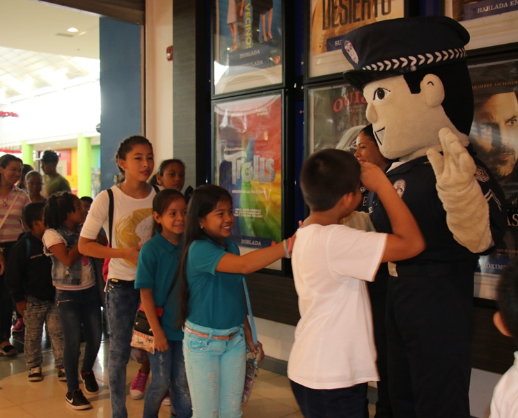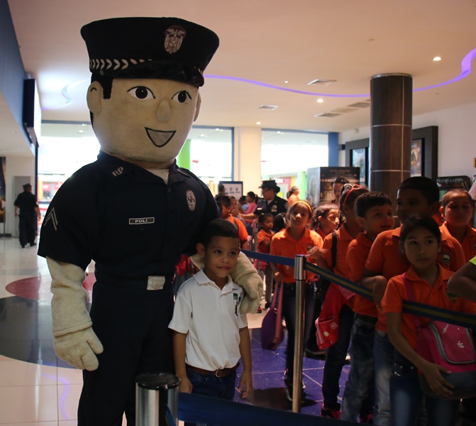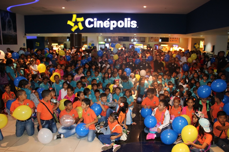 Unos 325 niños y niñas disfrutaron de un matiné, la mañana de este viernes 11 de noviembre, en las instalaciones de Cinépolis localizado en un centro comercial de la provincia de Panamá Oeste. El evento organizado por la Zona Policial de Chame quien tuvo como objetivo principal ofrecerle a los pequeños que pertenecen a diferentes escuelas del distrito de Chame, un día de sano esparcimiento. Durante la actividad los niños compartieron con la mascota de la Policía Nacional “Polito”, recibieron palomitas de maíz, sodas y disfrutaron de la película infantil “Cigüeñas”. El Comisionado Carlos Delgado, Jefe de la Zona Policial de Chame, expreso que esta iniciativa forma parte de las actividades que se realizan como parte de los programas de seguridad ciudadana con el fin de pasar una mañana amena junto a los estudiantes y así lograr el acercamiento con la comunidad.