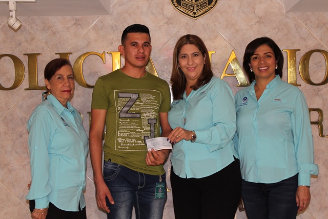 Dos miembros de la Policía Nacional recibieron un aporte económico, por parte de Las Damas A.S.U.L (Armonía, Solidaridad, Unidad y Lealtad), para que sean utilizados para la compra de medicamentos y entre otras necesidades de los uniformados. El cabo segundo Irving Rodríguez de la Unidad Canina y la Agente Magdalena Dixon de la Policía De Niñez y Adolescencia agradecieron de manera especial este gesto de las Damas A. S. U. L. que será de mucha ayuda para sus necesidades. “Este grupo emprendió como misión colaborar en mejorar la calidad de vida de los hombres, mujeres de uniforme y la de sus familias, ya que siempre están dispuestos a servir a la comunidad” agregó la licenciada Nacelys Ulloa de Pinzón, presidenta de las Damas A.S.U.L.
