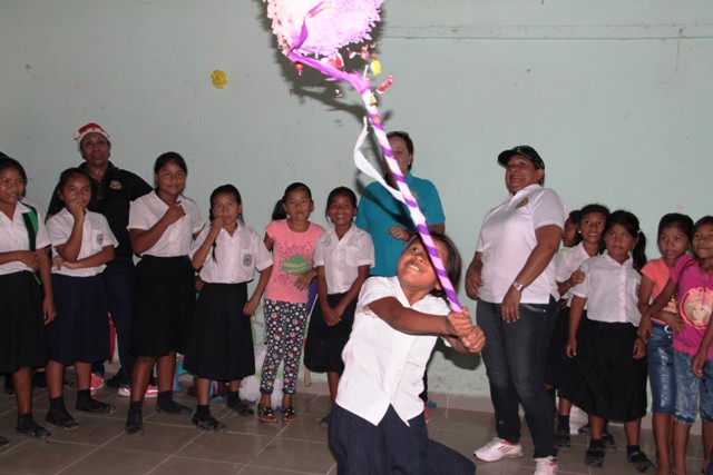 Una visita inesperada llena de sorpresas se dio en la comunidad Piriatí Emberá ubicada a 134 kilómetros de la ciudad capital con dirección a Panamá Este, donde viven más de 200 niños y niñas. La familia de la Dirección de Investigación Judicial se trasladó hasta ese lugar para llevar una grandiosa fiesta sorpresa, en el Centro Educativo Básico General, con el objetivo de transmitir la alegría y el amor que representa la Navidad en la familia. Un grupo de unidades, encabezadas por el comisionado Marcos Córdoba y el apoyo de docentes de dicho plantel, los niños de esta comunidad disfrutaron de juegos inflable, payasos, y sobre todo de dulces, piñatas, canastas de frutas, bebidas y muchas golosinas. Los pequeños recibieron obsequios por las unidades quienes durante la planificación de esta actividad, en conmemoración a su noveno aniversario a celebrarse hoy 27 de diciembre, se convirtieron en padrino de cada niño, lo que les permitió conocerlos a través de sus maestras y así sorprenderlos. “Compartir con estos niños y ver en sus rostros la felicidad nos llena de orgullo y más aun sabiendo el compromiso que tenemos con todos ellos, que es el de Proteger y Servir”, expresó el comisionado Córdoba, deseándoles a todos unas felices fiestas.