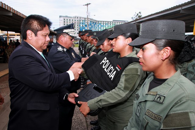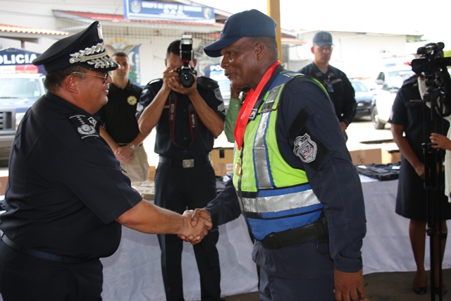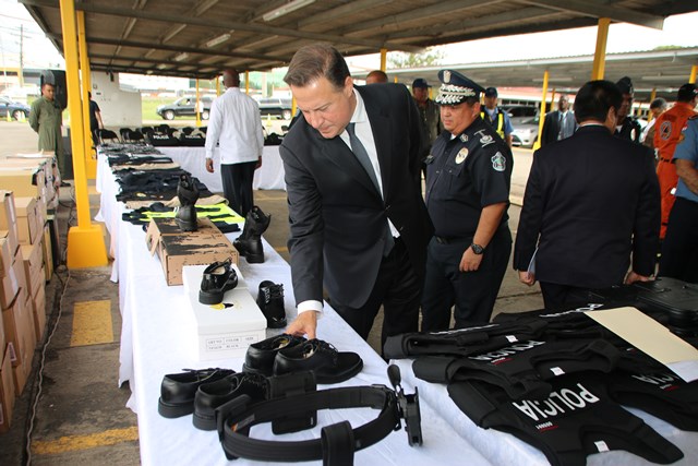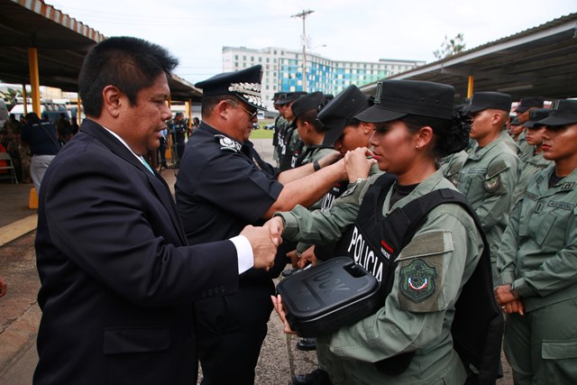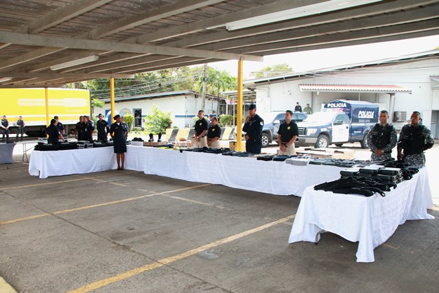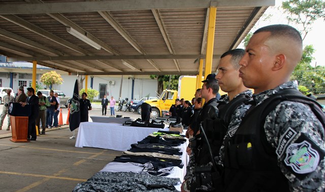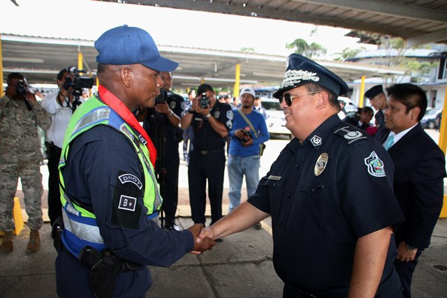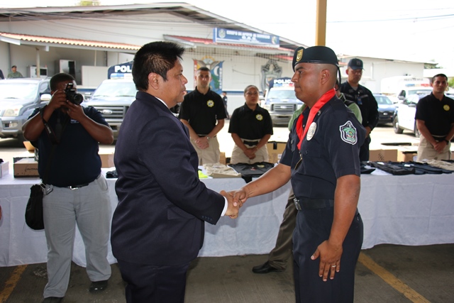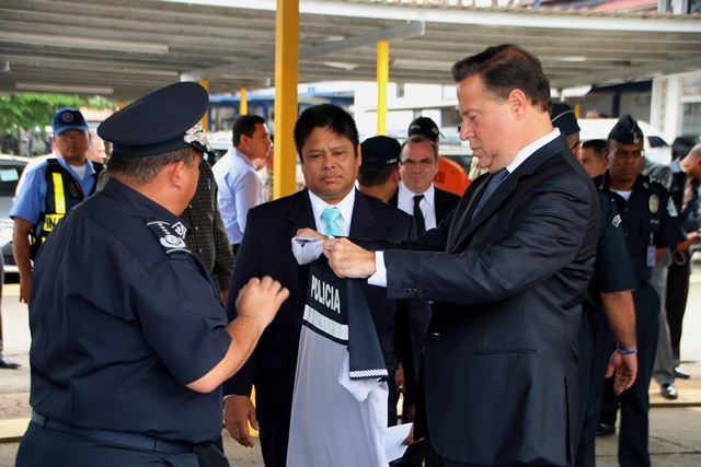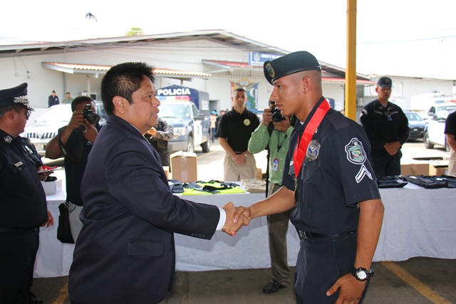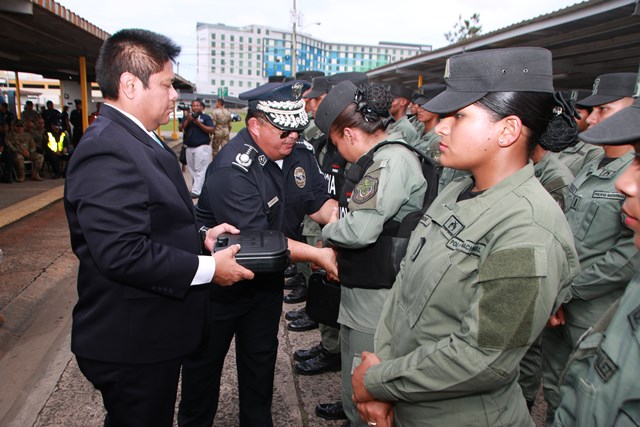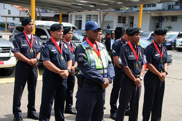 Nueve unidades de la Policía Nacional fueron condecorados con la medalla al “Servicio Distinguido” por su hazaña, valentía y su rápido actuar al momento de capturar a delincuentes que pretendían asaltar en la Caja de Ahorros ubicada en la Universidad de Panamá y en la Dirección General de Ingresos (DGI) en la Avenida Balboa, ocurridos el pasado 14 de diciembre y el 20 de diciembre, respectivamente. Las condecoraciones las impuso el Ministro de Seguridad Pública, Alexis Bethancourt Yau y el Director de la Policía Nacional, Omar Ariel Pinzón, quienes agradecieron a estas unidades su labor y compromiso con la seguridad de los panameños. Se trata de ocho unidades policiales del Servicio Policial Motorizado (Linces) y una de la Dirección Nacional de Operaciones del Tránsito, quienes ese día capturaron a los delincuentes y luego puestos a órdenes de las autoridades competentes. El acto de condecoración se llevó a cabo en la sede de la Policía Nacional en el corregimiento de Ancón donde estuvo presente miembros del Directorio Policial e invitados especiales. En este mismo acto, se hizo entrega de nuevos equipos policiales para las unidades policiales, el cual será utilizado para la protección durante el servicio diario. Entre los implementos entregados están: Chalecos, armas, zapatos, botas, zambrones, y uniformes para los diferentes servicios que integran la Policía Nacional.