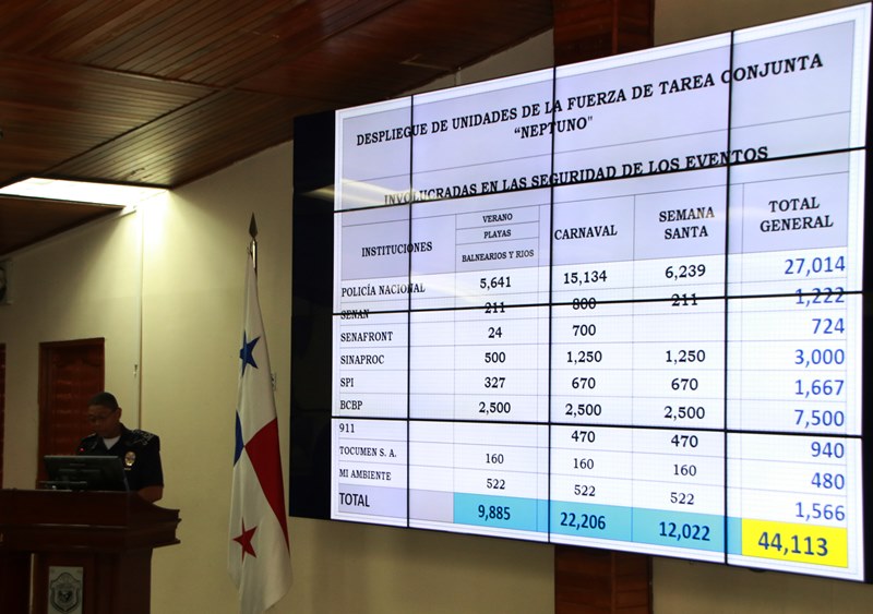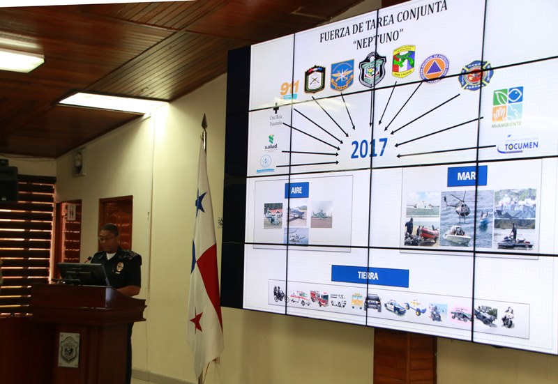 Más de 25 mil unidades de los estamentos de seguridad y emergencia que conforman la Fuerza de Tarea Conjunta (FTC) fueron desplegadas en todo el país para garantizar la vida de los panameños en Fin de Año, Carnavales y Semana Santa. Así lo anunció este martes el presidente Juan Carlos Varela durante la puesta en marcha del operativo denominado “Neptuno”. Durante el acto, celebrado en la sede de la Policía Nacional (PN), el Mandatario elogió el sacrificio de estos hombres y mujeres para cuidar a sus conciudadanos. “Quiero pedirle a la población su cooperación para que atienda las instrucciones a través de redes sociales de los estamentos de emergencia y seguridad. Además, se tendrá una cobertura masiva para evitar accidentes de tránsito o situaciones en las playas”, resaltó. El operativo, que se inició hoy, se extenderá hasta las 8:00 p.m. del 30 de abril de 2017, cuando los panameños retornan a la ciudad capital tras la conmemoración de la Semana Santa en diferentes puntos del país. Además, en el primer trimestre del año las playas y balnearios son muy concurridos, por lo que se convierten en puntos de interés para las autoridades. Igualmente, con la celebración de los Carnavales y Semana Santa se activa con mayor personal el Centro de Operaciones de Emergencia (COE), en Aguadulce. A partir del enero y hasta el mes de mayo se tiene planeada la inversión de carriles todos los domingos desde Quesos Chela, en Capira, hasta La Espiga de La Chorrera, en horario de 2:00 p.m. a las 6:00 p.m. EN tanto, en el retorno previsto para el miércoles 28 de febrero, miércoles 1 y jueves 2 de marzo, se iniciará desde Sajalices hasta La Espiga de La Chorrera. Entre las instituciones que integran la FTC están: Sistema Nacional de Protección Civil, Sistema Único de Emergencias-SUME911, Autoridad de Tránsito y Transporte Terrestre, PN, Benemérito Cuerpo de Bomberos de Panamá, Servicio de Protección Institucional, Servicio Nacional Aeronaval, Servicio Nacional de Fronteras, Autoridad Marítima de Panamá, Ministerio de Salud y Ministerio de Ambiente. A través del Decreto Ejecutivo No.2 del 7 de enero de 2015 se conformó la FTC para velar y garantizar la seguridad de las personas que concurran a las playas, ríos, balnearios, senderos y sitios de interés turístico o similar así como toda actividad pública o privada realizada en el territorio nacional.
